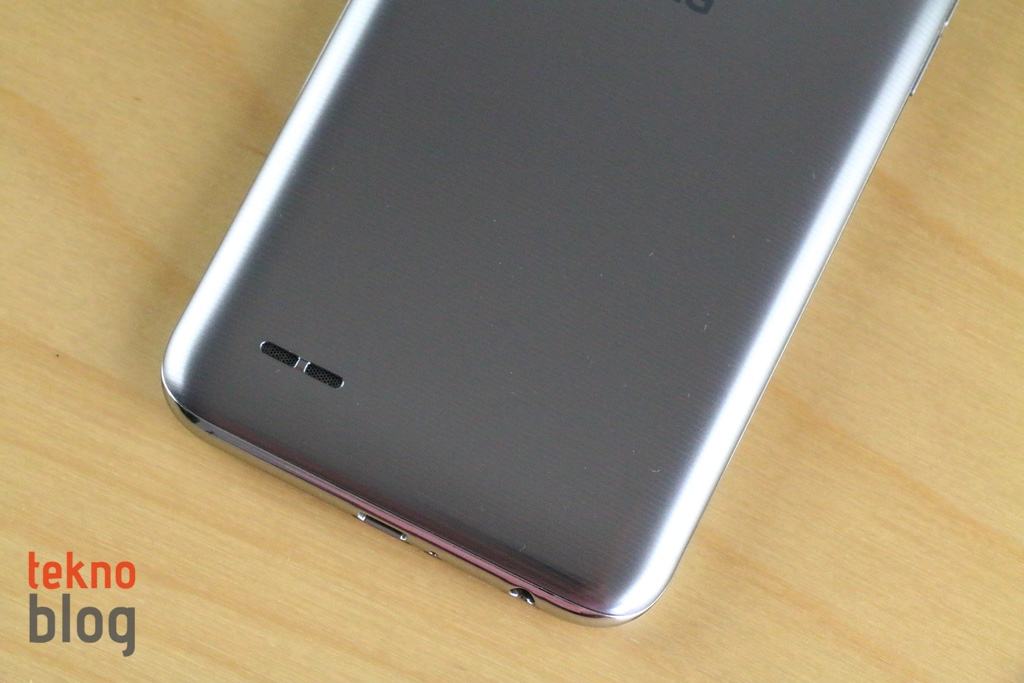 Akıllı telefonun arka paneline geçildiğinde ise en üst kısımda 13 megapiksel çözünürlüklü kamera göze çarpıyor. Kameranın hemen altında ise LED flaş yer alıyor. LED flaşın altında ise güç butonu bulunuyor. Bu buton aynı zamanda ekranı uyandırmak veya kilitlemek için kullanılıyor. Telefonun yurt dışında satılan versiyonlarında bu buton, parmak izi tarayıcısı olarak da işlev görüyor. Arka panelin sol alt kenarında ise iki küçük hoparlör ızgarası yer alıyor. Bu ızgaralar küçük olsalar da, ses çıkışlarının bir hayli kuvvetli olduğunu belirtmek gerekiyor.