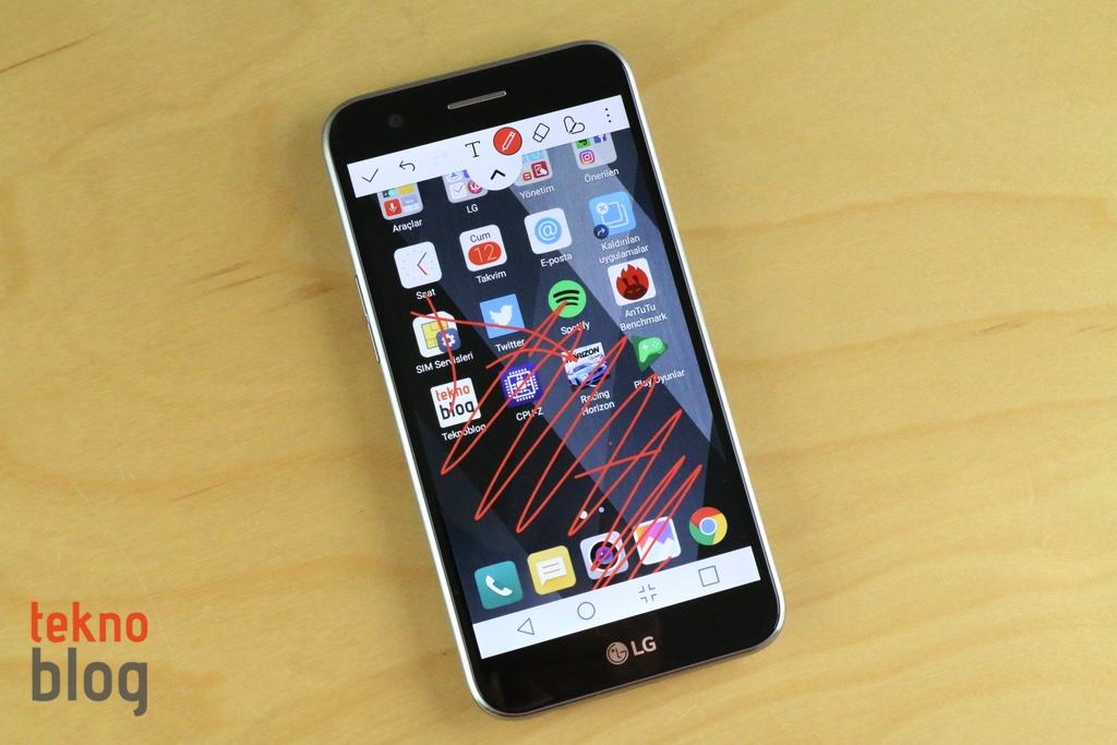 2017 model LG K10’un arayüzünde gezinirken ekran üzerindeki sanal tuşlardan yararlanılıyor. Android’in standart sanal tuşlarına ek olarak, kullanıcılar ekranın alt kısmına başka sanal tuşlar da ekleyebiliyor. Eklenebilecek tuşlar konusunda seçenekler sınırlı olsa da, özellikle QSlide adı verilen tuş eklendiği takdirde çok sayıda araca hızlı biçimde erişim sağlanabiliyor. Bu araçlar arasında e-posta ve takvim uygulamaları, rehber ve dosya yöneticisi gibi seçenekler bulunuyor. Kullanıcılar diledikleri takdirde sanal tuşların dizilimini değiştirebiliyor.