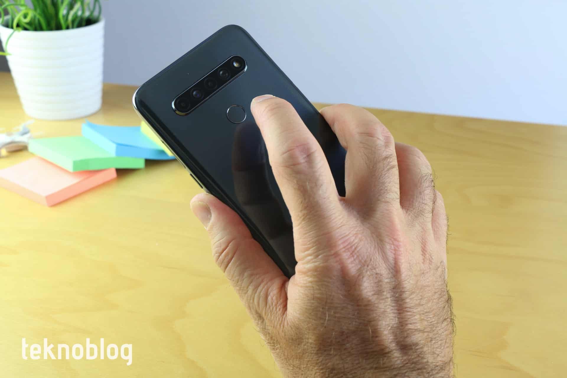 Arka tarafta dört kamera yatay eksende sıralanmış ve bunların yanına flaş yerleştirilmiş. Kamera modülü dışa doğru hafif çıkıntı yapsa da, bu durum telefon bir yüzeye konulduğunda sağa sola yalpalamasına neden olmuyor. Bu kamera modülünün hemen altında ise parmak izi okuyucusunu görüyoruz.