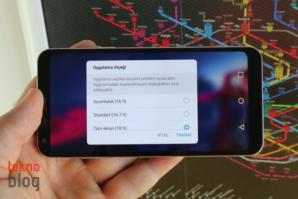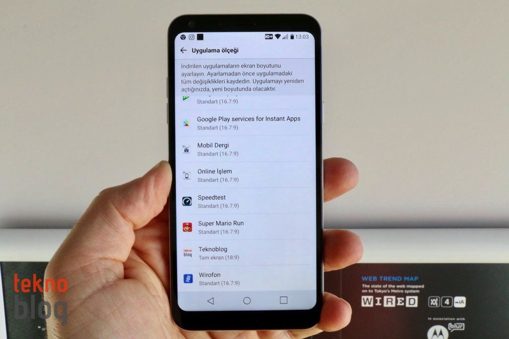 Ekran tıpkı G6’nınki gibi yuvarlatılmış köşelere sahip. Bu da görsel açıdan biraz olsun güzellik katıyor. 18:9 görüntü oranlı ekranda YouTube videolarını izlemek istediğinizde kenarlarda siyah sütunlar sizi bekliyor. Bununla birlikte videoyu yakınlaştırarak tam ekrana oturtabilirsiniz. Bununla birlikte uygulamaları da uyumluluk modu yardımıyla ekrana tamamen oturacak şekilde çalıştırmanız mümkün oluyor.