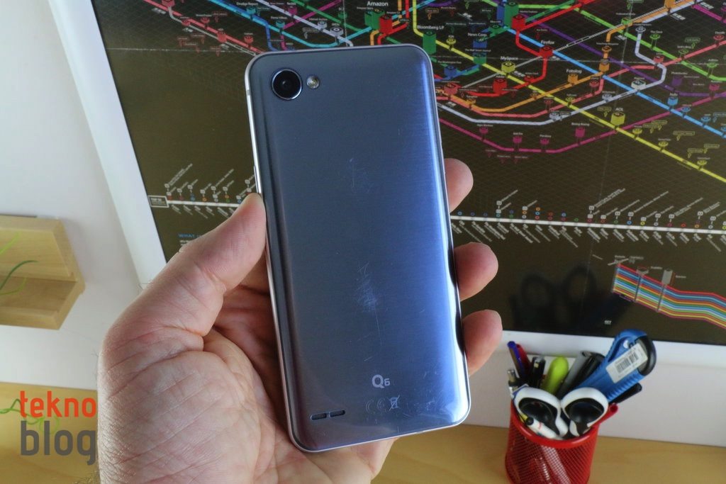 LG G6’nın arkasında güç butonu olarak da kullanılan parmak izi okuyucusu bulunuyordu. Ancak Q6’da güç butonu, söylediğimiz gibi sağ kenarda. Arkada ise parmak izi okuyucusu yok. Aslında telefonun hiçbir yerinde yok. LG, bu telefonda söz konusu biyometrik kimlik doğrulama yöntemine yer vermemiş. Onun yerine yüz tanıma gibi alternatif bir yönteme yer vermiş ki, ona da zamanı geldiğinde değineceğiz.