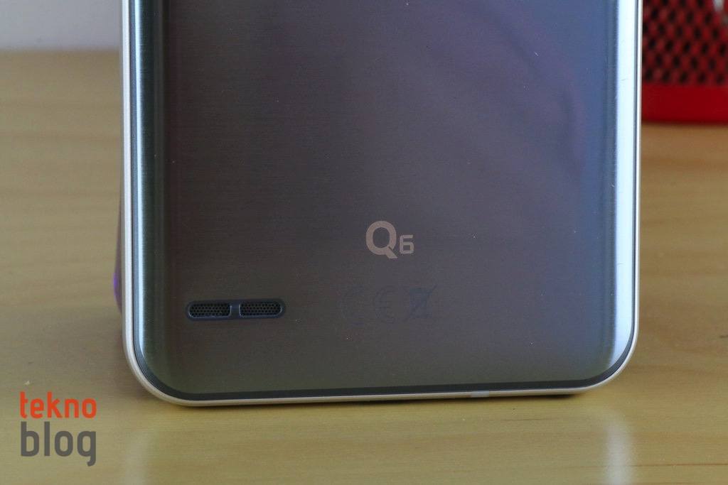 Üst kenarda ikinci mikrofon varken alt kenarda ana mikrofon, 3.5 mm. kulaklık jakı ve microUSB portu bulunuyor. USB-C portunun epey yayıldığı, hatta orta segment seviyesindeki telefonlarda bile bulunmaya başladığı bir ortamda LG Q6’da microUSB portunu görmek doğrusu biraz şaşırtıcı. Yine de, işini iyi şekilde yaptığını belirtelim.
