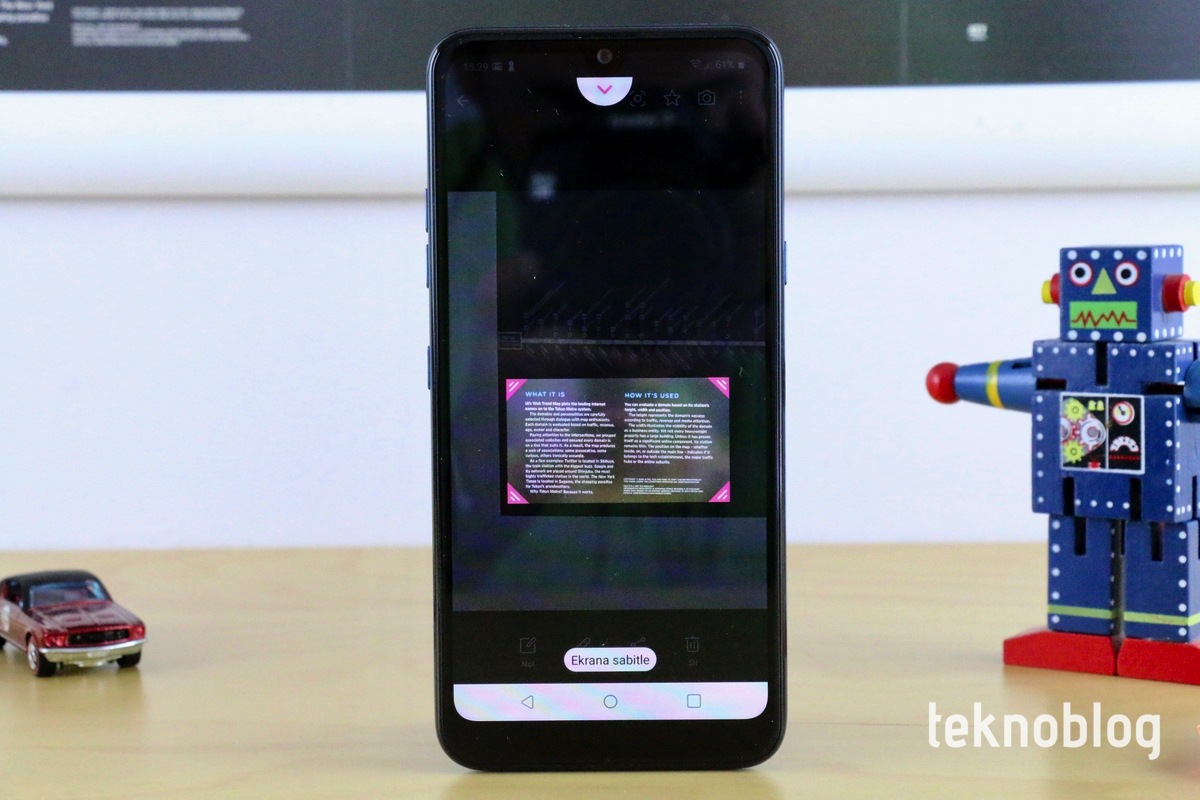 720p çözünürlüklü 6.26 inçlik ekran, tahmin edilebileceği üzere, pek keskin bir görüntü sunmuyor. Ekranın büyüklüğü multimedya içerik tüketimi için uygun olsa da, yüksek görüntü kalitesi arayanların beklentilerinin karşılanmasının kolay olmadığını açıkça belirtmekte fayda var.