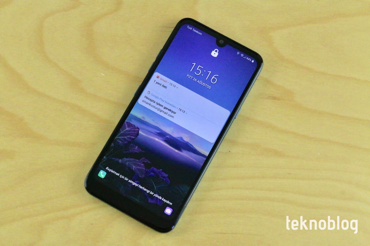LG Q60’ın ekranı, telefonun ön panelinde yüzde 78.8’lik bir alan kaplıyor. Bunun günümüz standartlarına kıyasla düşük bir oran olduğunu söylemek yanlış olmayacaktır. Ekran 6.26 inç büyüklüğünde ve 19:9 görüntü oranında olsa da, ekranın etrafındaki çerçeveler standartlara göre biraz daha kalın. Bu kalınlık yan ve alt kenarlarda daha iyi hissediliyor. Ekranın üst kısmında ön kameraya ev sahipliği yapan su damlası şeklinde bir çentik bulunuyor.