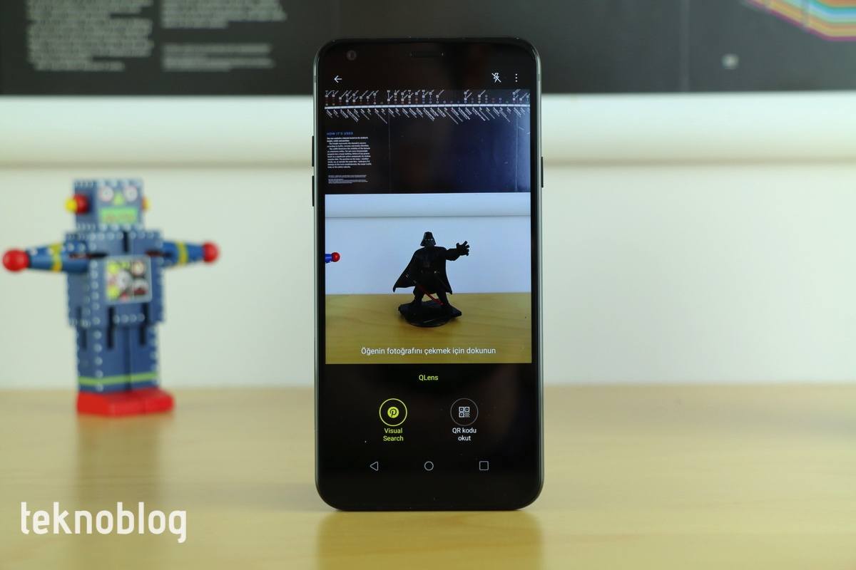 LG Q7+’ın kamerasında QLens isimli bir özellik bulunuyor. Söz konusu özellik, kullanıcıların kamerayı kullanarak görsel arama yapmasını sağlıyor. QLens’te görsel arama için Pinterest’in veri tabanından yararlanılıyor. Kamera QLens moduna geçtikten sonra ekrana dokunulduğunda kadrajdaki nesnenin fotoğrafı çekiliyor. Ardından yapay zekâ devreye giriyor ve çekilen fotoğraftaki nesneyi, Pinterest’in veri tabanıyla karşılaştırıyor. Sistem, kullanıcılara anıtsal yapılarla ilgili olarak bilgi de sağlıyor. QLens menüsü üzerinden QR kodlarını taramak da mümkün oluyor.