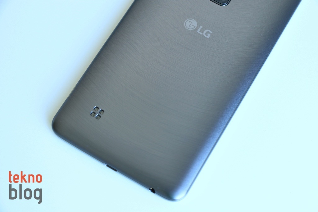 Stylus 2’nin şık bir görünümü var. Geçen yılın LG G serisi telefonlarını andıran bir tasarımı var. Metalik görünüme sahip kenar çerçevesi, dairesel dokulu, hafif pürüzlü, fırçalanmış metal görünümlü arka kapağı bu telefona belirli bir hava katıyor. Üstelik arka kapağı çıkarabilir, böylelikle SIM kart ve SD kart yuvalarıyla pile de erişebilirsiniz. Pilin değiştirilebilir olması bazı kullanıcılar için iyi bir haber sayılır.