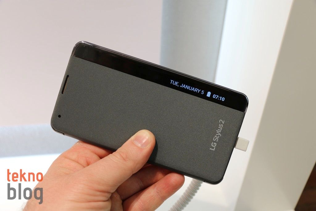 LG’nin MWC 2016’daki standında tıpkı LG X Cam ve LG X Screen gibi kenarlarda bir yerde sergilenen LG Stylus 2’yi kısa süreliğine de olsa deneyimleme fırsatı elde ettik. LG sadece telefonu değil, aynı zamanda onun için çıkardığı kılıfı da sergiliyor.