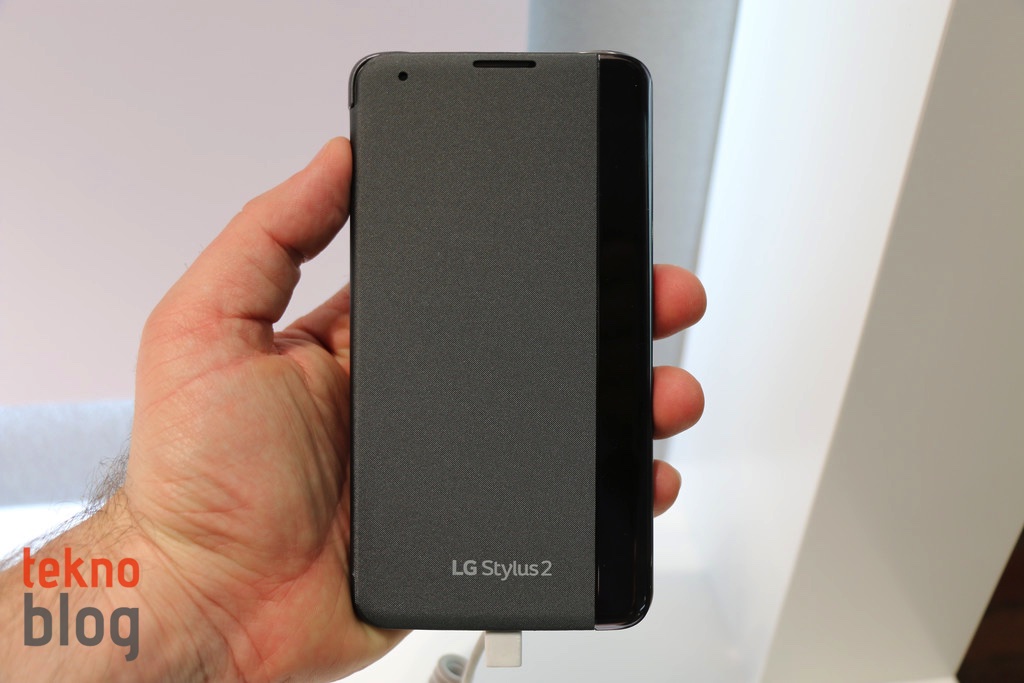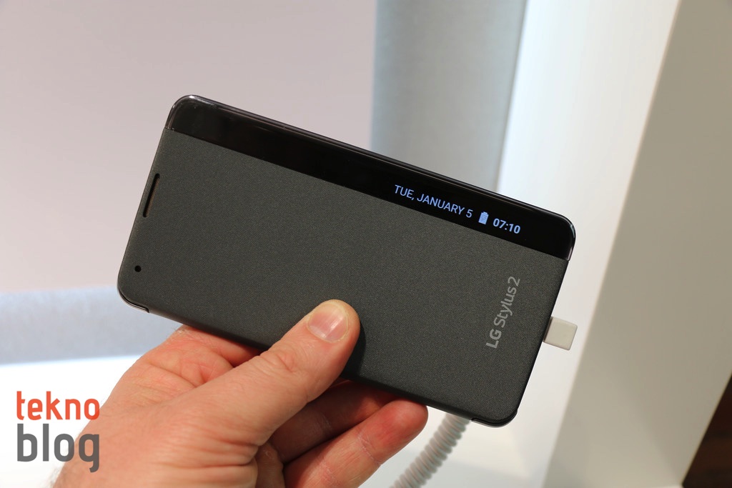 Bu arada LG Stylus 2 için çıkarılan kılıfın en güzel tarafın ön kapağında barındırdığı şeffaf bant üzerinden bildirim, saat, vb. çeşitli bilgileri göstermesi. Bu kılıf sayesinde LG Stylus 2’yi bir not defteri havasında kullanmak mümkün oluyor.