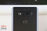 V20’nin tuş dizilimi G5’tekine benziyor. Yukarıda da belirttiğimiz gibi, arka yüzde parmak izi okuyucusu yerleştirilmiş güç butonu bulunuyor. Bu tuş rahatlıkla kavranıyor ve derinliği de oldukça iyi. Parmak izini saniyeler içinde tanıtabilir, ekran kilidini hızlı şekilde açabilirsiniz. İşaret parmaklarınızı tanıtmanız yeterli olacaktır. Ancak parmak izi okuyucusunun arka yüzde yer alması, V20 bir yüzey üzerinde dururken erişimi zorlaştırıyor, bu durumda alternatif kimlik doğrulama yöntemlerinden yararlanmanız gerekiyor. Güç butonunun üst kısmında çift kamera, çift LED flaş, lazer otomatik odak gibi bileşenler yer alıyor. Bunlar dışa doğru epey çıkıntı yapıyor.