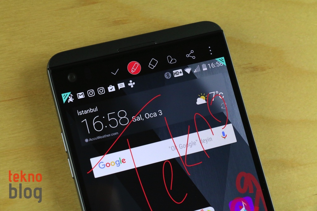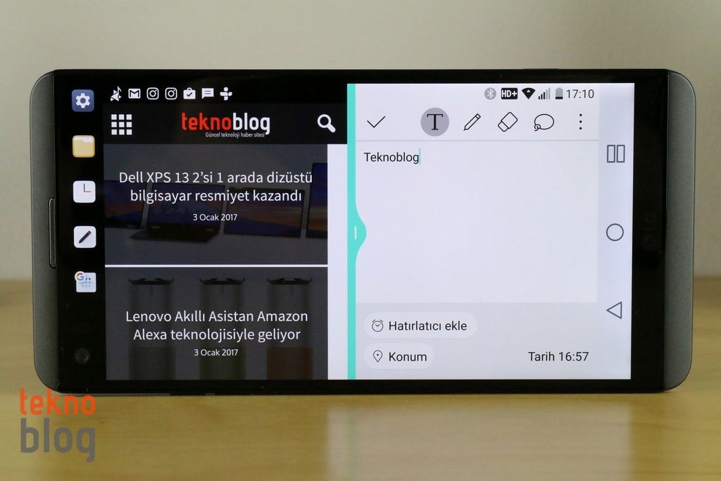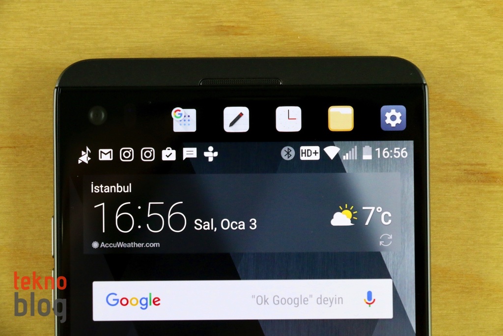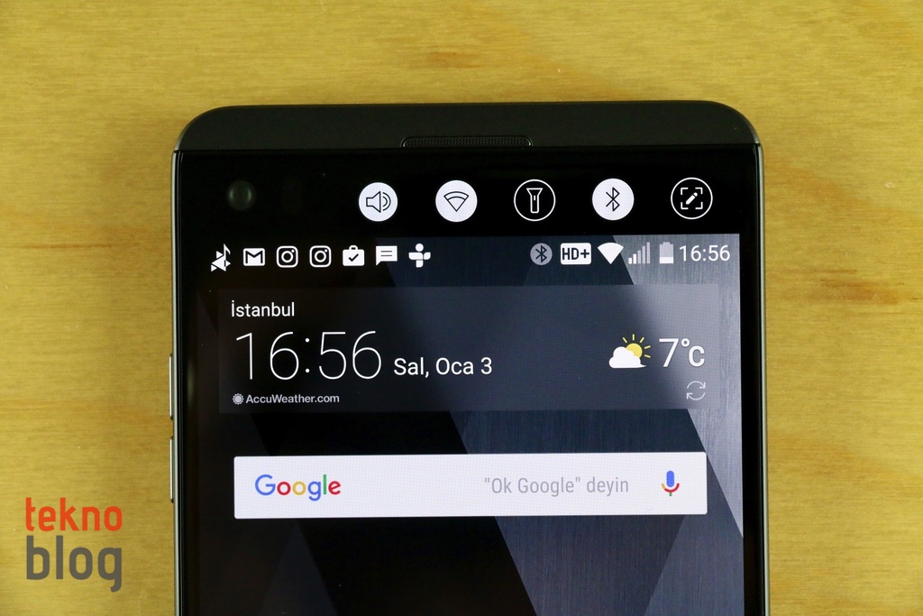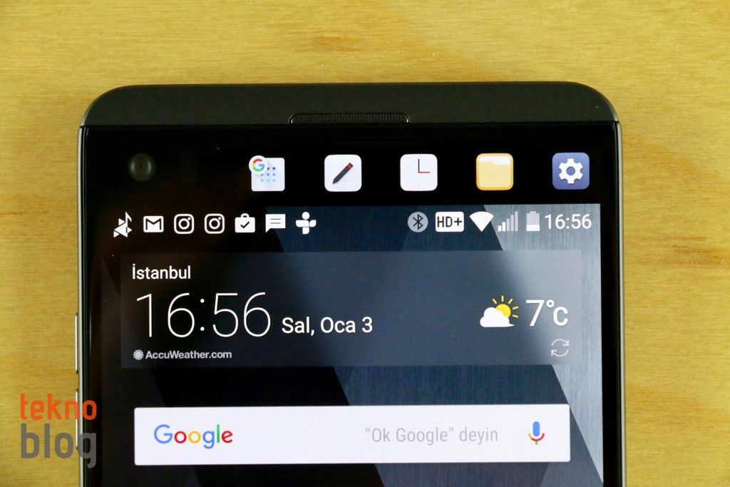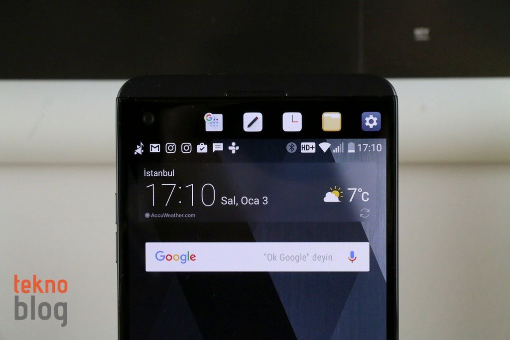 İkincil ekran işlevsellik bakımından çok büyük fark yaratmıyor. LG V20’yi kullandığımız süre boyunca ikincil ekrandan favori uygulamaları açmayı pek düşünmedik. Ancak ekran kapalıyken el fenerini açmak için hızlı araçları kullandığımız oldu. Onun dışında ikincil ekranda adınızın veya sevdiğiniz bir sözün sürekli gösterilmesi imkanını sunan özellik daha kullanışlı oluyor. Ayrıca ana ekran kapalıyken ikincil ekranın normale göre daha düşük ışık şiddetinde çalışmaya devam etmesi; saat, tarih, bildirim gösterimi yapması kullanışlı oluyor.