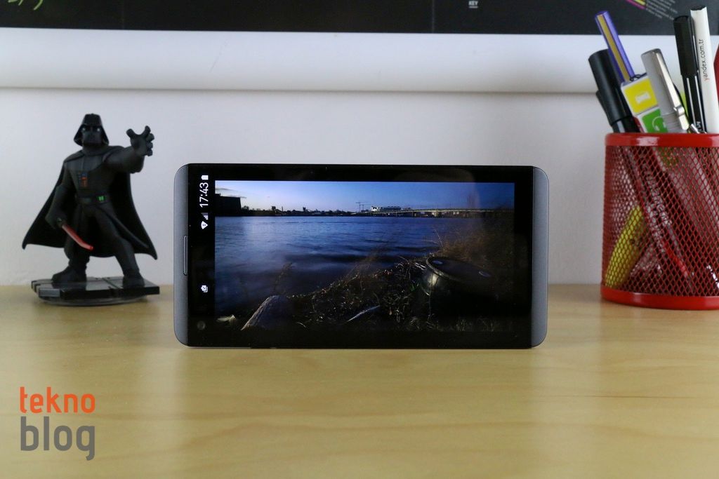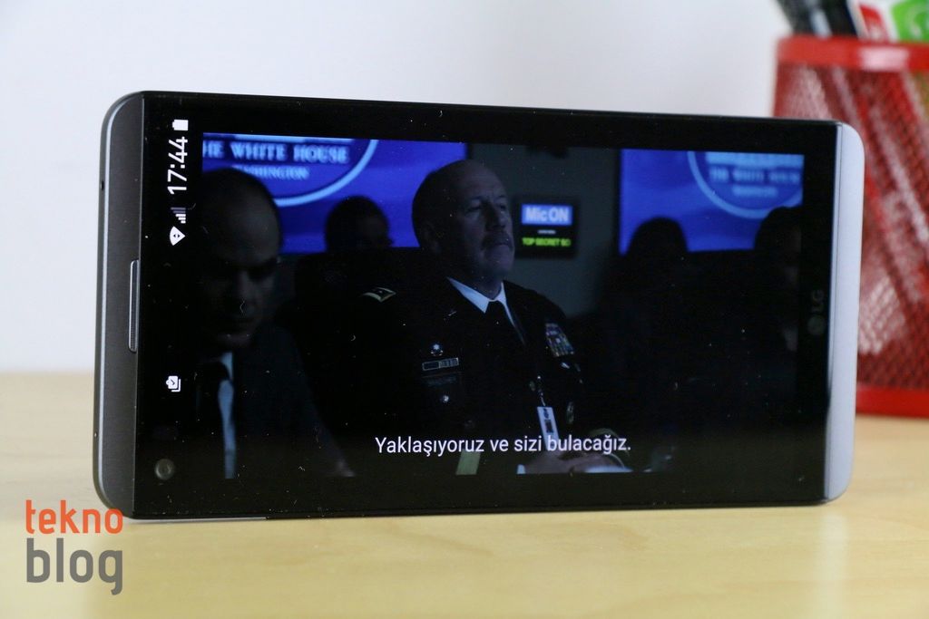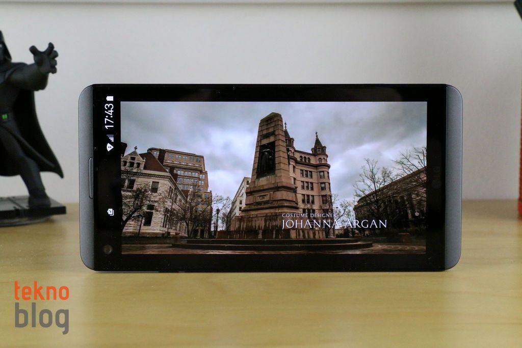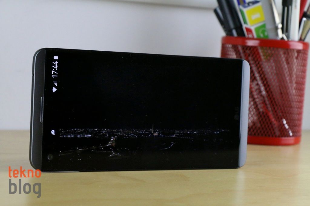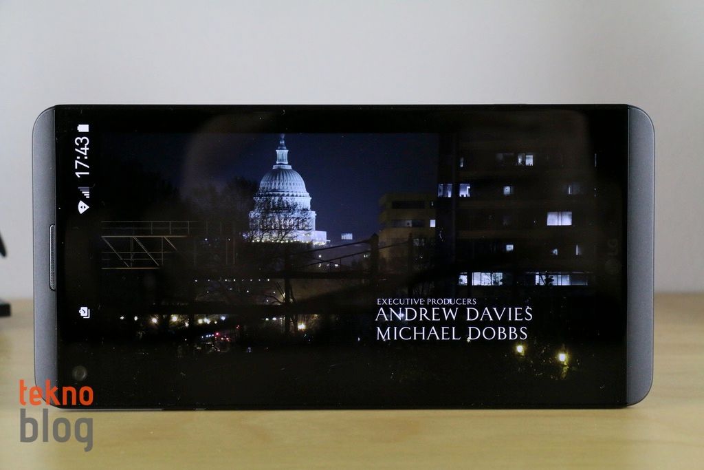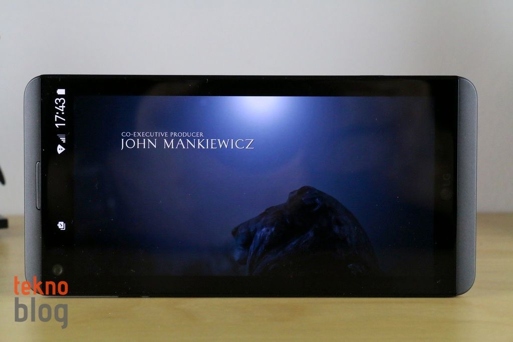 LG V20’nin ana ekranı, yukarıda belirttiğimiz gibi 5.7 inç köşeden köşeye uzunluğa sahip. 2560 x 1440 piksel çözünürlüklü IPS Quantum panel 513 ppi gibi yüksek bir piksel yoğunluğu sunuyor. Yüksek parlaklıklı ekranın görüş açıları da epey geniş. Ayrıca renkler bakımından da epey zengin. Bu da LG V20’yi, amacına uygun şekilde film izlemek veya YouTube videolarını seyretmek için fazlasıyla elverişli hâle getiriyor. Ekranın parlak güneş ışığı altında sunduğu görüş de iyi seviyede. Böylelikle dışarıda bir şeyler izlemek veya kamerayı kullanmak daha kolay hâle geliyor.