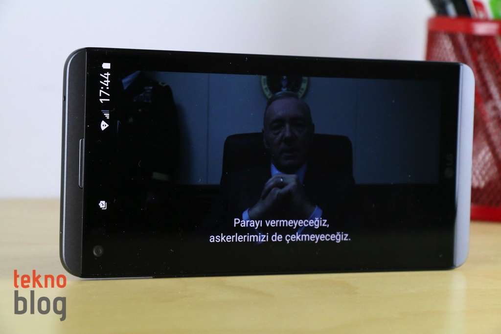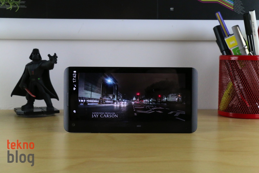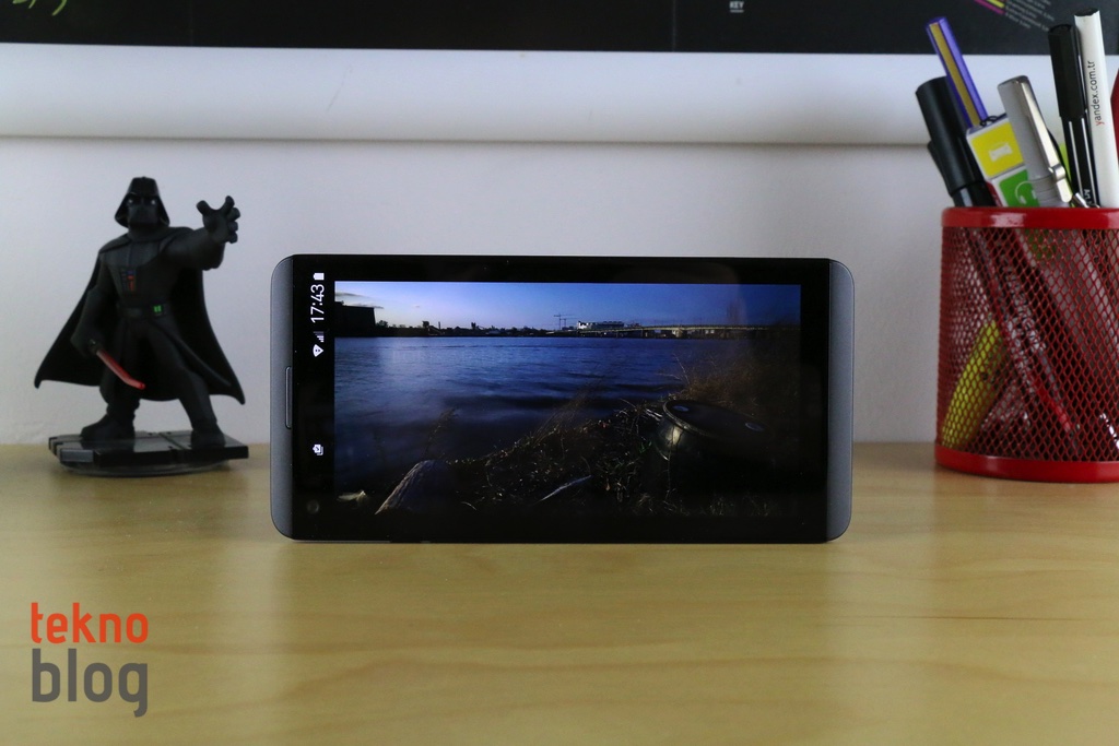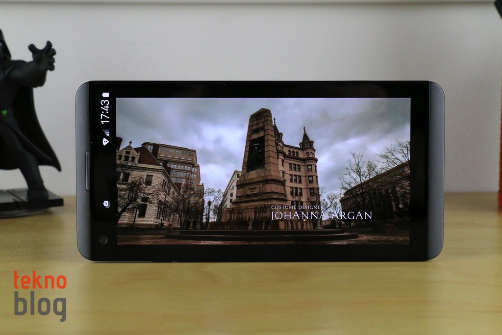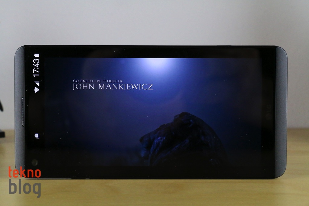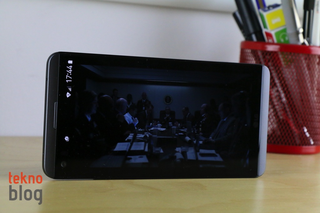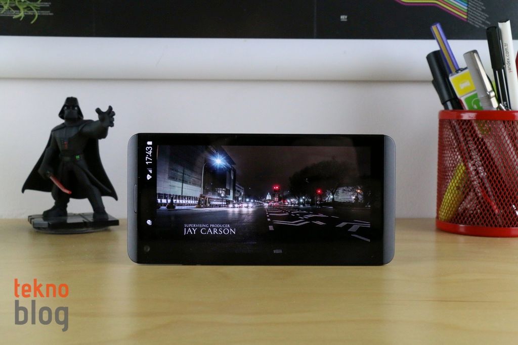 LG V20’nin ana ekranı, yukarıda belirttiğimiz gibi 5.7 inç köşeden köşeye uzunluğa sahip. 2560 x 1440 piksel çözünürlüklü IPS Quantum panel 513 ppi gibi yüksek bir piksel yoğunluğu sunuyor. Yüksek parlaklıklı ekranın görüş açıları da epey geniş. Ayrıca renkler bakımından da epey zengin. Bu da LG V20’yi, amacına uygun şekilde film izlemek veya YouTube videolarını seyretmek için fazlasıyla elverişli hâle getiriyor. Ekranın parlak güneş ışığı altında sunduğu görüş de iyi seviyede. Böylelikle dışarıda bir şeyler izlemek veya kamerayı kullanmak daha kolay hâle geliyor.