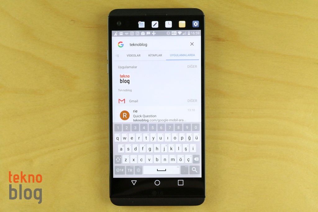 LG’nin üstünde en fazla durduğu özelliklerden bir tanesi In Apps adlı uygulama içinde arama yapma imkanı sunan bir özellik oluyor. İlk kez V20’de sunulan, daha sonra diğer Nougat telefonlarında olması da beklenen bu özellik sayesinde telefonda yüklü olan rehber, kişi, e-posta gibi yerleşik uygulamaların içeriklerinde, aynı zamnda Google Play Store’dan yüklediğiniz diğer uygulamaların içeriklerinde de arama yapmak, sonuçları hızlı şekilde listelemek mümkün oluyor. Bir kişi kaydını veya e-posta iletisini ararken In Apps epey kullanışlı oluyor. Ancak çoğu zaman In Apps’in varlığını unuttuğumuzu, açıp kullanmadığımızı söylemeliyiz.