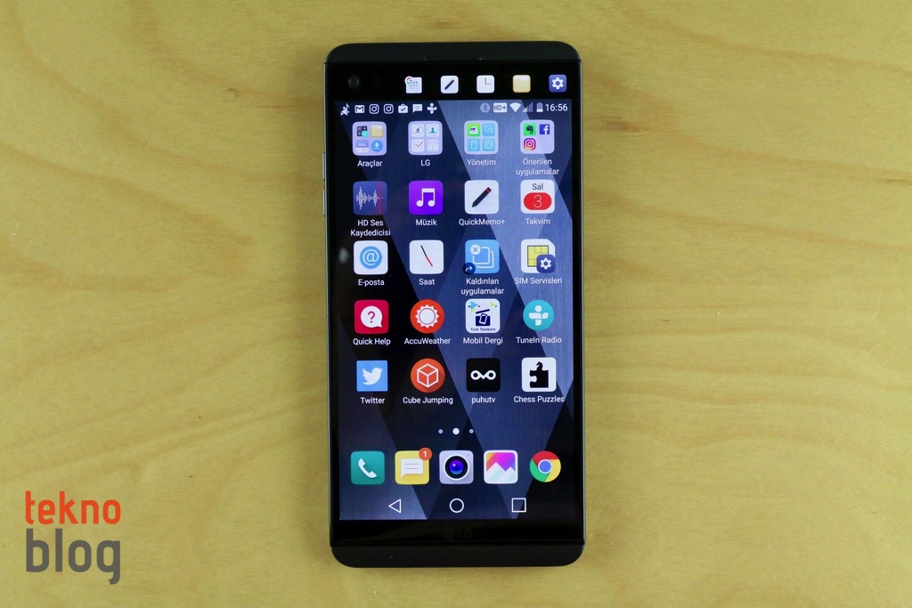 LG V20’de Google’ın Gmail, Haritalar, YouTube gibi uygulamaları yüklü olarak geliyor. Ayrıca LG’nin de LG Health, QuickRemote, SmartWorld gibi uygulamaları yüklü şekilde bulunuyor. Yönetim adı verilen bir klasör altında da telefonun en çok ihtiyaç duyulan güç tasarrufu, pil kullanımı, bellek, depolama gibi ayarlarına kısayollar bulunuyor. LG V20’yi Türk Telekom veya Turkcell hattınızla kurduğunuz takdirde, bu mobil operatörlerin mobil uygulamaları kurulumdan sonra otomatik olarak yükleniyor. Bu arada LG, Önerilen Uygulamalar klasörü altında Facebook, Evernote ve Instagram uygulamalarını da yüklü şekilde sunuyor. Ancak bu uygulamaları ilk kez kullanmak istediğinizde büyük ihtimalle güncellemek zorunda kalacaksınız.