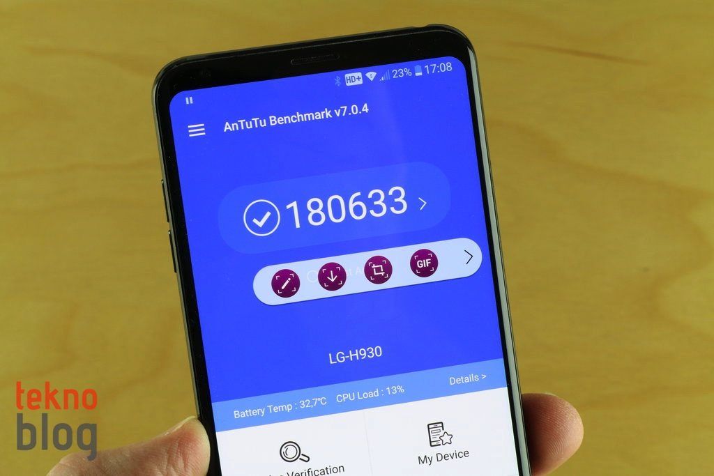LG V30+, bir amiral gemisi telefona yakışır nitelikte performans sunuyor. Kullanıcı arayüzünde gezinti akıcı ve hızlı, uygulamalar bekletmeden açılıyor. İnternette gezinti de gayet pürüzsüz ve baş ağrısız biçimde gerçekleşiyor. Üst düzey oyunları da, yüksek grafik kalitesiyle, akıcı biçimde oynayabilirsiniz. Isınma konusunda da telefon makul sınırlar içinde kalmayı başarıyor. Benchmark testleri de LG V30+’ın gerçekten yüksek performans sunduğunu gösterir sonuçlar veriyor.