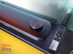 W7 OLED TV iki temel parçadan oluşuyor. Bunlarda bir tanesi ekran, diğeri de hoparlör gibi görünen, ancak hoparlörle birlikte tüm donanım bileşenleri bünyesinde barındıran, LG’nin “ünite” olarak adlandırdığı birim. Ünitenin üstünde yer alan hoparlör bir hayli güçlü, Dolby Atmos ses teknolojisinin de yardımıyla odayı dolduran, izlediğiniz içeriğe kendinizi kaptırmanızı sağlayacak bir niteliğe sahip. OLED TV’lerin sergilendiği alana epey kalabalıktı, ancak buna rağmen hoparlörün yüksek ses çıkışını ve sesteki kaliteyi anlamak mümkün oluyor. Hoparlörün dışında, ünitenin arka tarafında çeşitli giriş ve çıkışlar yer alıyor.