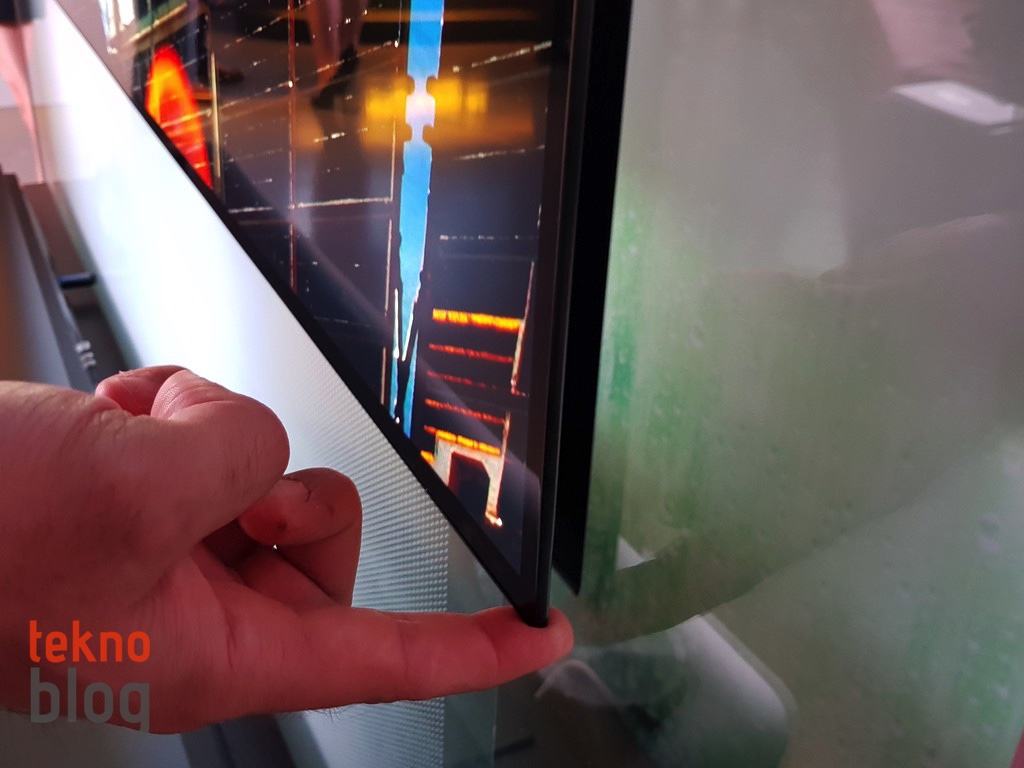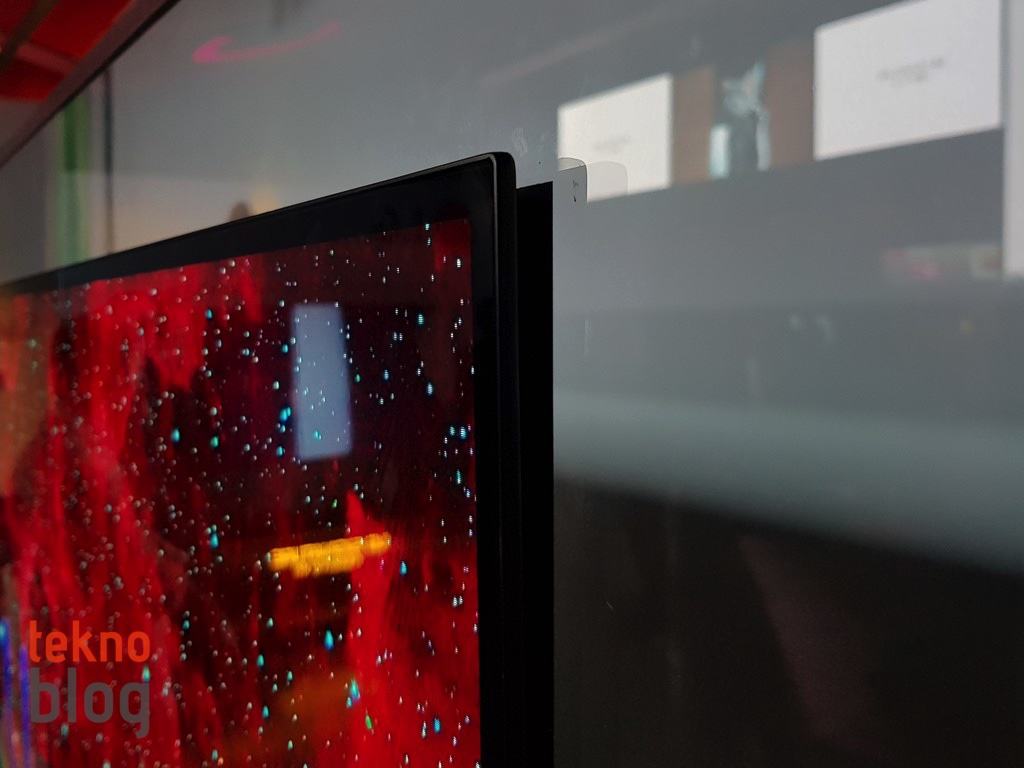 LG W7 OLED TV öncelikle tasarımıyla bir hayli etkileyici bir ürün. 3.85 mm.’lik kalınlığıyla akıllı telefonlardan bile ince bir tasarıma sahip olan bu TV’yi duvara veya herhangi bir mobilya ünitesine monte etmek için manyetik bir plaka kullanılıyor. TV paneli bu manyetik plakaya tutturuluyor. ekran çok ağır olmadığı için manyetik kuvvet bunu rahatlıkla tutabiliyor. Eğer isterseniz, ekranı sanki bir çıkartmayı yerinden çıkarır gibi köşesinden çekerek manyetik plakadan ayırabilirsiniz.