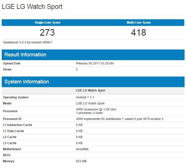 Geekbench benchmark testinin sonuçları, akıllı saatin Android 7.1.1 işletim sistemini taşıdığını gösteriyor. Bu da Android Wear 2.0’ın Android Nougat üzerine kurulu olduğu anlamına geliyor. Söz konusu durumun Android Wear saat sahiplerini sevindireceğini tahmin etmek pek zor değil.