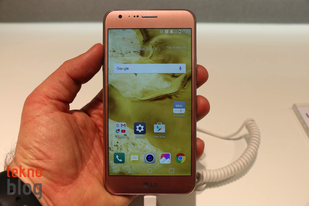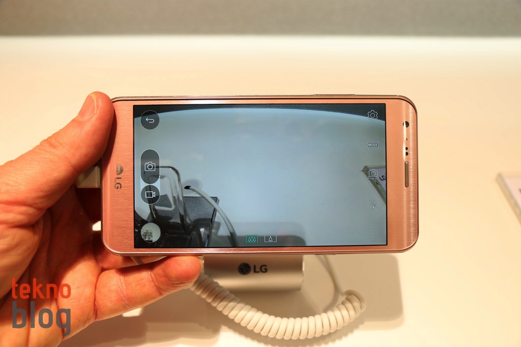 LG X Cam’in titan gümüş ve pembe altın renkleri LG standında sergileniyor. Her iki telefonun da X Cam’i oldukça şık gösterdiğini söyleyebiliriz. Yuvarlatılmış köşeleri yine yumuşak hatlarıyla LG X Cam biraz LG G5’i de andırıyor. Aslında LG bu telefonu daha önce tanıtarak ister istemez LG G5’in tasarımı hakkında da biraz ipucu vermiş.