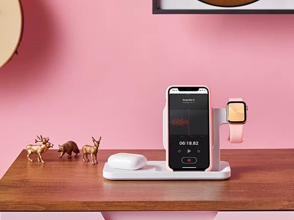 Diğer AirPower muadilleri gibi, Powered 3-in-1 Dock da iki kablosuz şarj alanı barındırıyor. Bunlardan bir tanesi telefon için tasarlanmış stand tarzında bir ped. Diğeriyse kulaklıklar için eklenmiş düz bir ped. Cihazın hemen kenarında da Apple Watch için eklenmiş bir şarj yuvası var, böylelikle aynı anda üç Apple cihazını şarj edebilirsiniz.
