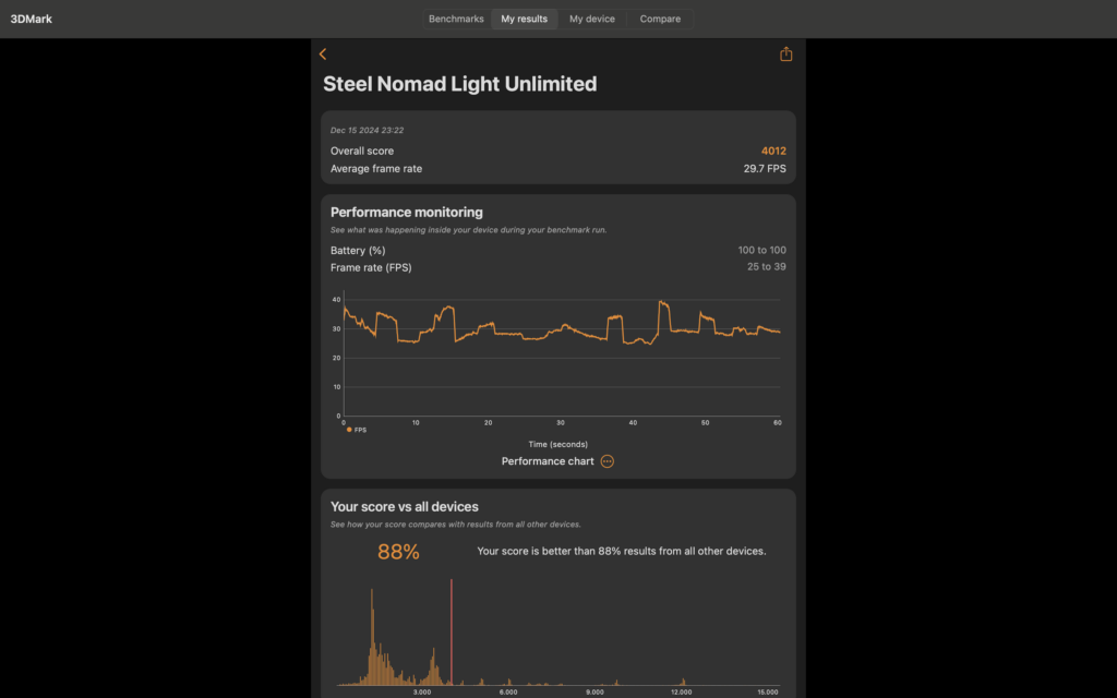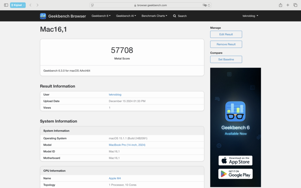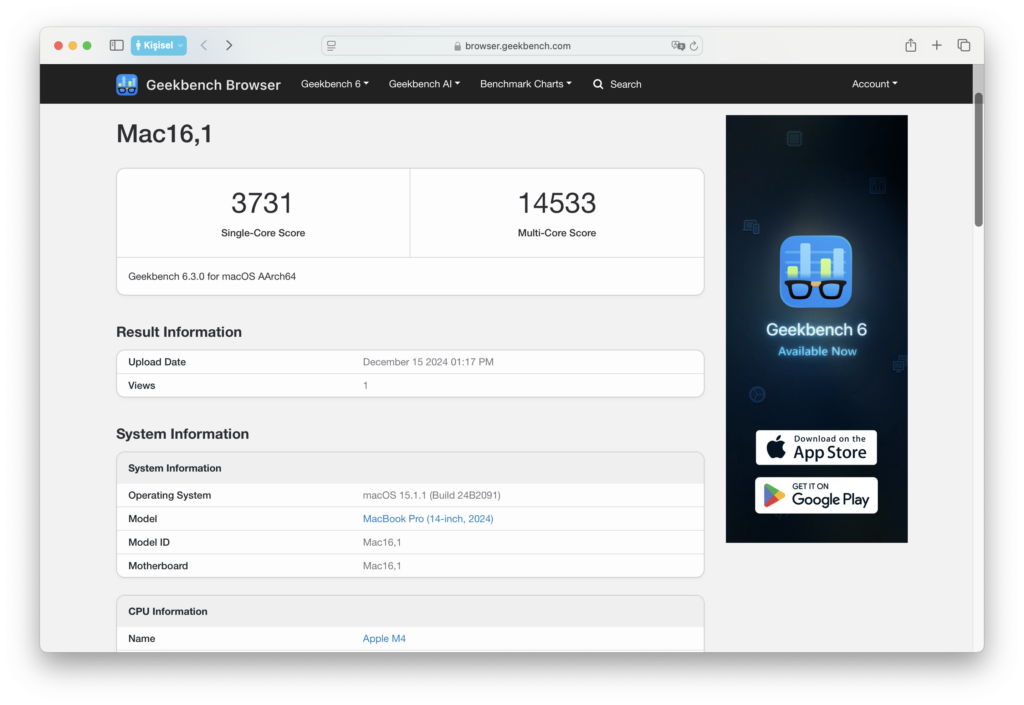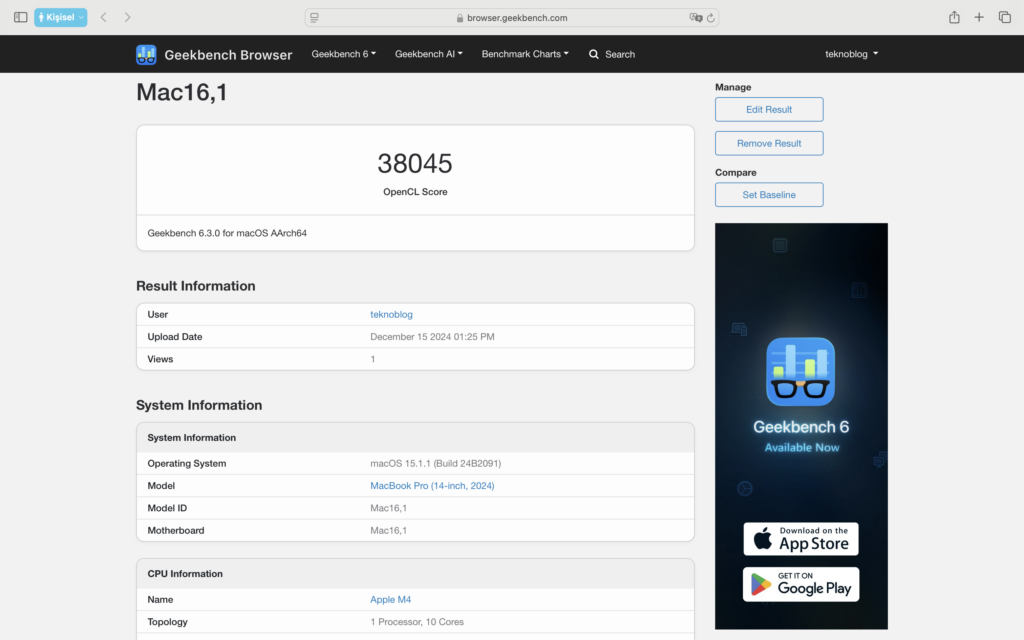 Grafik performansı açısından, M4 çipin sunduğu entegre GPU, temel seviye MacBook Pro’nun yeteneklerini daha da ileriye taşıyor. Adobe Premiere Pro ya da Final Cut Pro gibi video düzenleme yazılımlarında performansın önceki nesillere kıyasla ciddi anlamda iyileştiği görülüyor. Aynı şekilde, grafik yoğunluğu yüksek oyunlarda bile akıcı bir performans elde ediliyor. Elbette, bu cihaz bir oyun bilgisayarı olarak tasarlanmamış olsa da, grafik performansı beklentilerin üzerinde bir deneyim sunuyor. Apple’ın Metal API’si ile uyumlu çalışan M4 GPU, grafik işleme konusunda cihazın potansiyelini en üst seviyeye çıkarıyor.