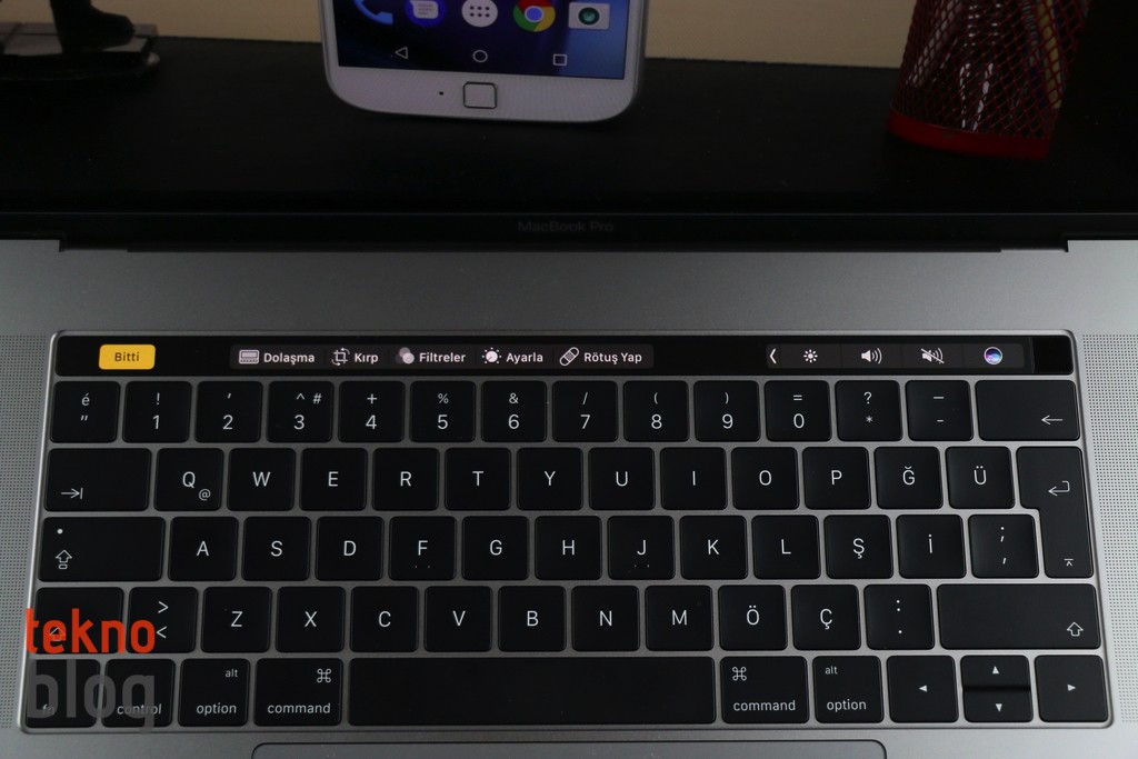 Geldik Apple’ın 2016 model MacBook Pro’larının en dikkat çeken, ses getiren özelliğine… Hem PC hem de Mac klavyelerinde klavyelerin en üst satırı çeşitli fonksiyon tuşlarına ayrılır. Ancak genellikle bu tuşlara çoğu kullanıcının eli hiçbir zaman gitmez. Bunu fark eden Apple, klavyenin üst satırındaki tuşları kaldırıp, bunun yerine yeni bir etkileşim aracı ekliyor. Touch Bar olarak adlandırılan yeni bir kontrol ve etkileşim çubuğu, çoklu dokunmatik yeteneklere sahip olan, 2170 x 60 piksel Retina çözünürlüklü, camla kaplı panelden oluşuyor. Milyonlarca renk destekleyen Touch Bar, klavyenin hemen üst kısmında yer alıyor ve rahatlıkla erişilebiliyor.
