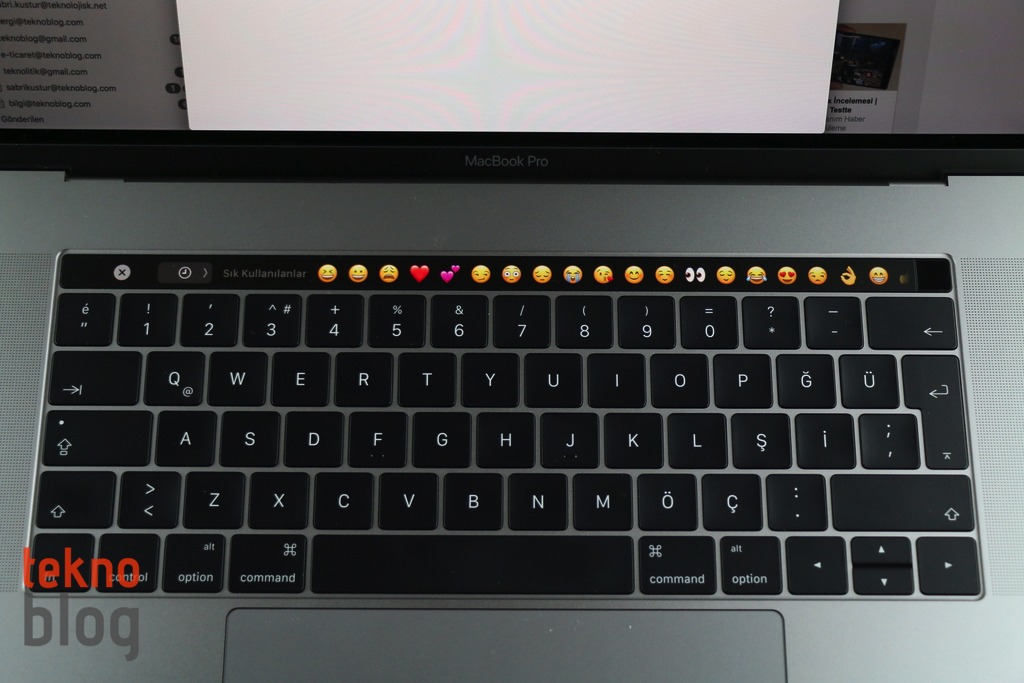 Eğer herhangi bir uygulama Touch Bar’ı desteklemiyorsa, Esc ile Control Strip arası boş bırakılıyor. Safari, Mail, FaceTime, Photos, Takvim, Notlar gibi yerleşik uygulamalar bu Touch Bar’ı destekliyor. Aynı zamanda Apple’ın Pages, Numbers, Keynote, Final Cut Pro X gibi macOS uygulamalarının da Touch Bar kontrolleri mevcut. Örneğin Safari uygulamasında geri ve ileri düğmeleri, ara düğmesi, yeni sekme butonu ve açık olan sekmelerin yer aldığı, üstünde kaydırarak veya dokunarak kolaylıkla geçiş imkanı sunulan bir bölüm bulunuyor. Yeni bir URL girmek için adres çubuğuna tıkladığınızda ise yer imleriniz, ikonlarıyla birlikte Touch Bar’da gösteriliyor. Mail uygulamasında ise yeni mesaj gönder, his simgeleri, otomatik düzeltme, yazı stil kontrolleri gibi, yeni bir ileti yazarken kullanacağınız kontroller; aynı zamanda tümünü cevapla, arşivle, taşı, bayrak işareti ekle gibi sık kullanılan kontroller gösteriliyor. Özellikle Mesajlar veya Mail uygulamalarında, his simgelerinin Touch Bar üstünde sıralanması oldukça eğlenceli bir görüntü oluşturuyor. His simgeleri veya daha popüler tabirle emojiler ile haberleşmenin giderek popülerleştiği bir ortamda böyle özelleştirilmiş bir emoji klavyesine sahip olmak güzel oluyor.