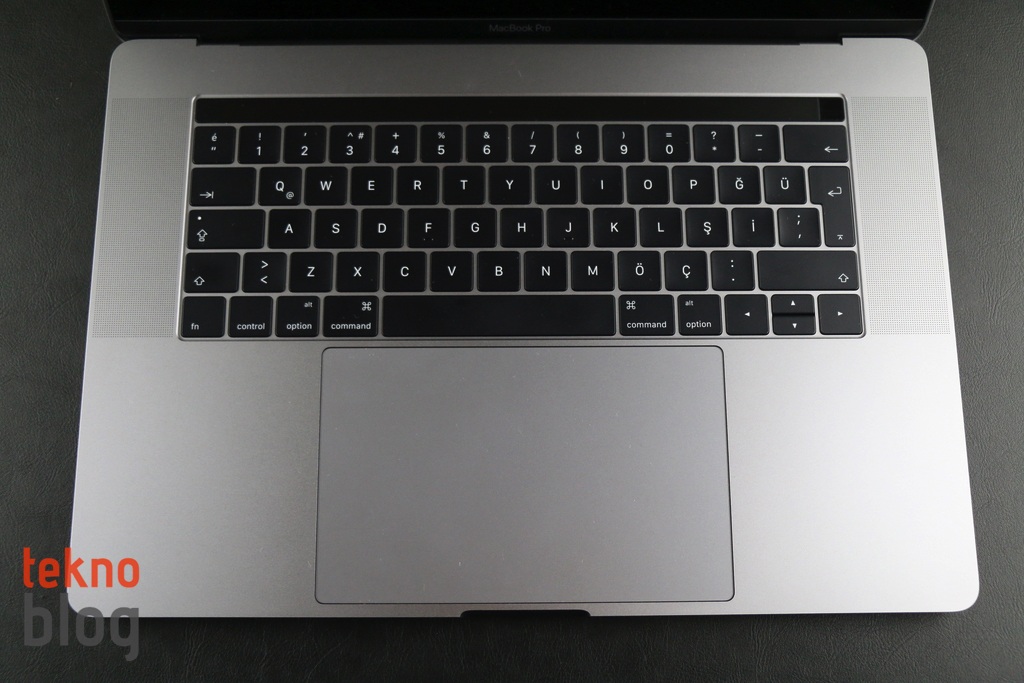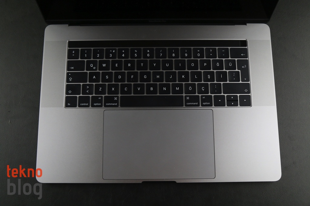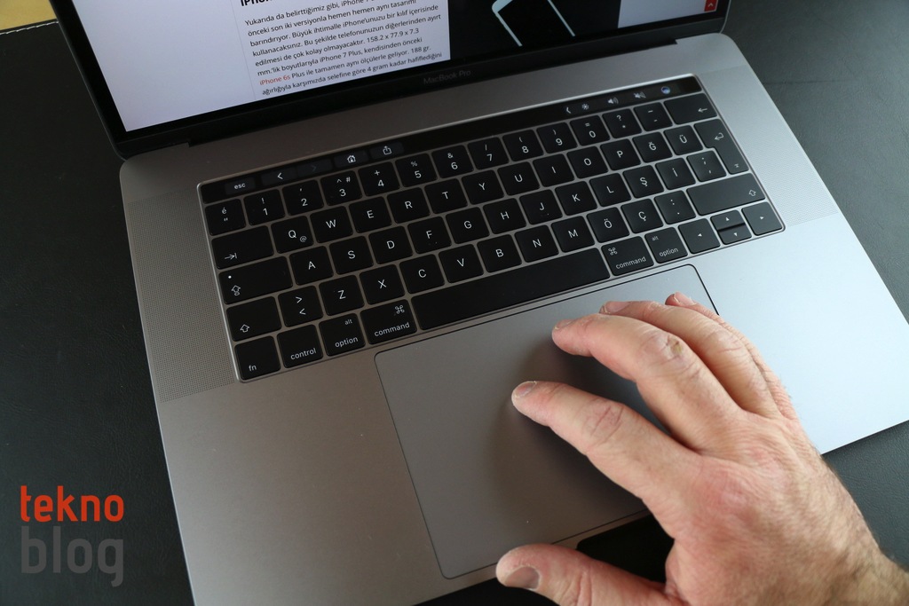 MacBook Pro’nun tam boyutlu klavyesine kısa sürede alışılıyor. Daha sonra eski klavyelere dönüp yazı yazmak bir hayli zorlayıcı oluyor. Normalde kullandığımız 13 inç, Mid 2014 model MacBook Pro’nun, normalde çok iyi olarak nitelendirdiğimiz klavyesi bile, bu bilgisayarın klavyesinden sonra çok yavan ve sıkıcı geliyor. Bu arada tuşların büyüyen alanının da yazı yazmayı kolaylaştıran ve rahatlatan olumlu bir unsur olduğunu belirtmemiz gerekiyor. Türkçe karakterlerin yerleştirildiği Q klavyede de her tuş için yeterli alanın ayrıldığını ve klavyeye bakmadan yazı yazmayı rahatlıkla gerçekleştirdiğimizi belirtmeden geçmeyelim.