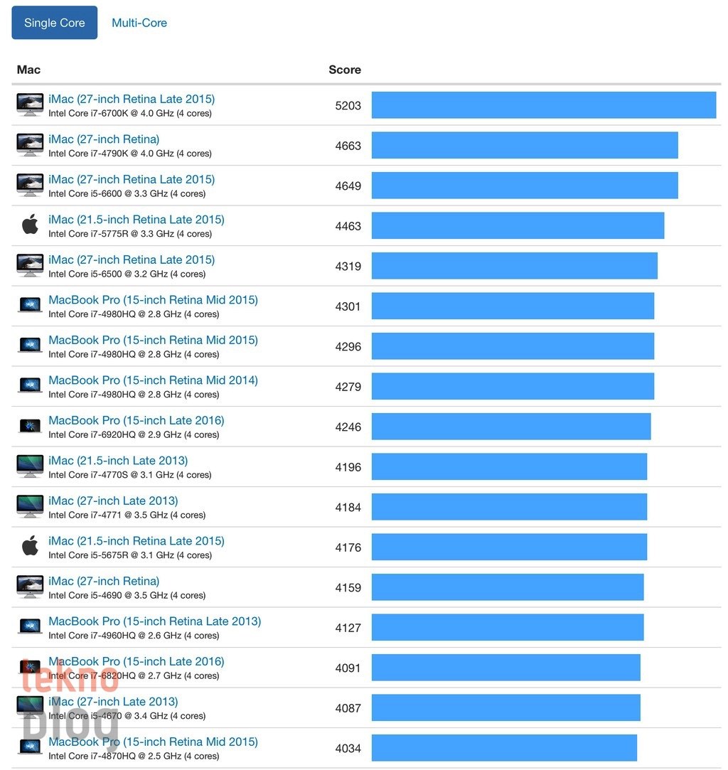 Benchmark testlerinde de bu dizüstü bilgisayar doğal olarak beklendiği gibi yüksek puanlar elde ediyor. GeekBench 4 gibi, Mac performans testlerinde sıklıkla başvurulan bir benchmark uygulamasında bu dizüstü bilgisayar en başlarda yer almasını sağlayacak sonuçları elde ediyor. SSD performansını test etmek için kullandığımız benchmark testinde de 2000 MB/s seviyelerine varan okuma ve yazma hızlarına ulaşmak mümkün oluyor. Yani, Apple hızlı bir SSD konfigürasyonu kullanıyor, bu da hem dosya transferinin hızlı şekilde gerçekleşmesini sağlıyor, hem de performansı epey yükseltiyor.
