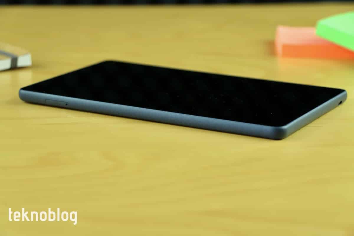 Tabletin sol kenarında microSD ve SIM kart tepsisinin yerleştirildiği yuva kullanıcıları karşılıyor. Sağ kenarda ise güç butonu ve ses kontrol tuşları bulunuyor. Üst kenarda 3.5 mm. kulaklık jakı ve hoparlör ızgarası yer alıyor. Alt kenarda ise sadece micro USB girişi bulunuyor.