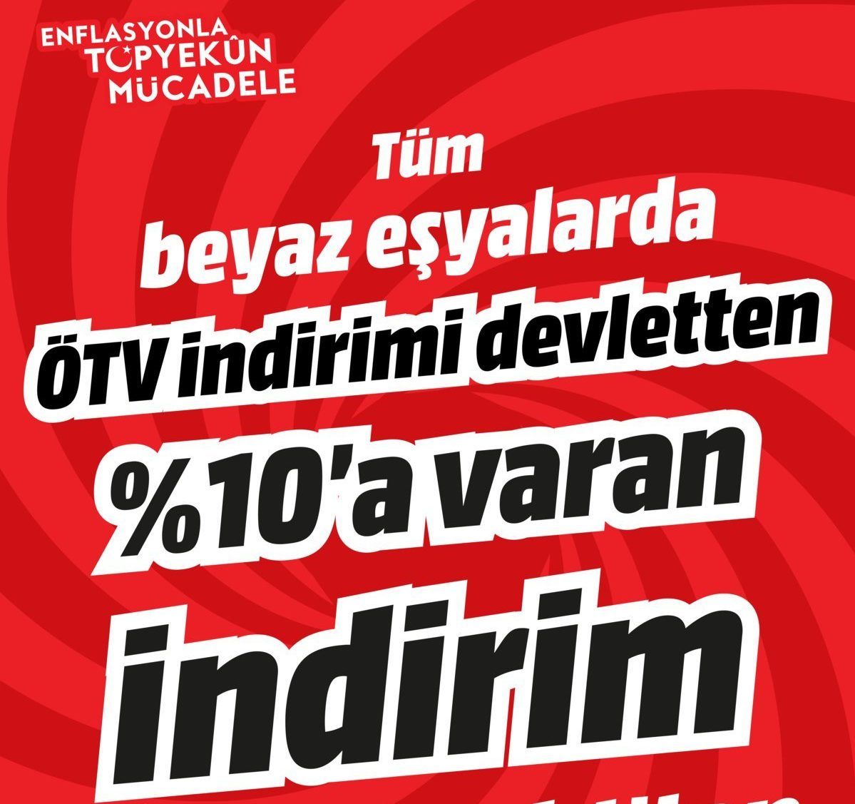MediaMarkt, beyaz eşyada hükümetin enflasyonla mücadele kapsamında yaptığı ÖTV indirimine ek olarak yüzde 10’a varan indirim yapıyor