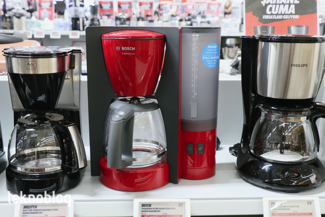 Filtre kahve makineleri de giderek daha fazla eve giren ürünler arasında bulunuyor. Eğer bir tane satın almak için uygun fırsat kolluyorsanız, Bosch TKA6A044 Kahve Makinesi değerlendirmeye değer bir ürün. Maksimum 15 fincan kapasiteli su haznesini yerinden çıkarıp suyunu rahatlıkla doldurabilirsiniz. Benzer şekilde kahve haznesi de kolaylıkla açılıyor ve yerinden çıkarılabiliyor. Kırmızı ve siyah gibi iki farklı renk seçeneği var. Aroma seçme düğmesi, damlama önleme, otomatik kapama gibi özellikleri de mevcut.