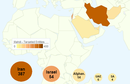 Kaspersky Labs ve Seculert’ten araştırmacılar, Orta Doğu’da 800’ün üstünde bilgisayarı etkileyen zararlı yazılımı araştırmak için bir araya geldiler. Özellikle devlet kurumlarını ve finans endüstrisini hedefleyen Mehdi isimli zararlı yazılım; tuş vuruşlarını kaydetme, ekran görüntüsü alma ve mikrofon aracılığı ile ses kaydetme gibi yeteneklere sahip. Kaynağı henüz bulunamayan Mehdi, daha sonra topladığı bu bilgileri uzaktaki bir sunucuya aktarıyor. Zararlı yazılımın en çok görüldüğü ülke 387 vaka ile İran. İsrail, Suudi Arabistan, Birleşik Arap Emirlikleri ve Afganistan gibi ülkelerde de söz konusu zararlı yazılıma rastlandığı gelen haberler arasında.