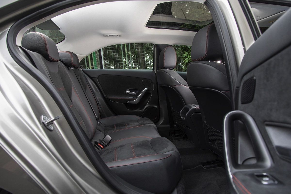 Yeni Mercedes-Benz A-Serisi Sedan 4 bin 549 mm uzunluğa, bin 796 mm genişliğe, bin 446 mm yüksekliğe ve 2 bin 729 mm dingil mesafesine sahip. Söz konusu boyutlar geniş bir yaşam alanı ve 420 litrelik bir bagaj kullanımı sunuyor. 1.024/944 mm ön/arka baş mesafesi, 1.457/1.446 mm ön/arka dirsek mesafesi, 1.400/1.372 mm ön/arka omuz mesafesi ve 1.062/861 mm ön/arka bacak mesafesi değerleri, sürücü ve beraberindeki yolcuların rahat yolculuk etmesine imkân tanıyor. Sadece omuz, dirsek ve baş mesafesiyle ortalamanın üzerinde değerler sunmakla kalmayan A-Serisi Sedan; 944 mm ile sınıfının en iyi arka koltuk baş mesafesi veya arka koltuklara geçiş kolaylığı gibi üstün özelliklerle aynı zamanda kullanım kolaylığı da sunuyor. 420 litre hacimli bagaj, 950 mm genişliğe ve 462 mm’lik kilit ile arka cam alt kenarını arasındaki mesafesiyle geniş bir yükleme girişi sunuyor.