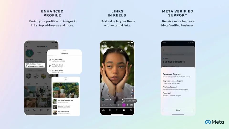 Bu temel plan artık bireyler için olduğu gibi işletmeler için de aynı fiyatta olsa da, şirketler ekstra avantajlar için büyük bir ödeme yapmak zorunda. İşletme sahiplerinin seçebileceği üç ek katman daha bulunuyor: Aylık fiyatı 44.99 dolar olan “Plus” plan, 119.99 dolar olan “premium” plan ve 349.99 dolar olan “maksimum” plan. Bunların her biri, Reels gönderilerine bağlantı ekleme yeteneği, hızlı takip edilen müşteri desteği ve daha fazla profil özelleştirme seçeneği gibi eklemeler içeriyor.
