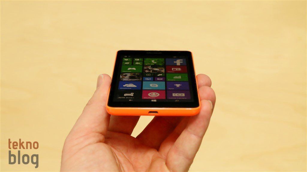 Diğer Lumia telefonlarında olduğu gibi Lumia 535’in sağ kenarında güç ve ses tuşları mevcut, kamera tuşuysa yok. Alt kenarda yer alan microUSB portu veri transferi ve şarj işlemleri için kullanılıyor. Üst kenarda da 3.5 mm. kulaklık jakı mevcut. Arkada ise 5 megapiksel kamera, onun üstünde LED flaş dikkat çekiyor. Ancak onlardan daha fazla dikkat çeken şey, Nokia logosu yerine, yine yatay eksene oturtulmuş Microsoft logosu oluyor. Kamera ve logo ile aynı hizada küçük bir hoparlör ızgarası da bir süre sonra göze çarpıyor.