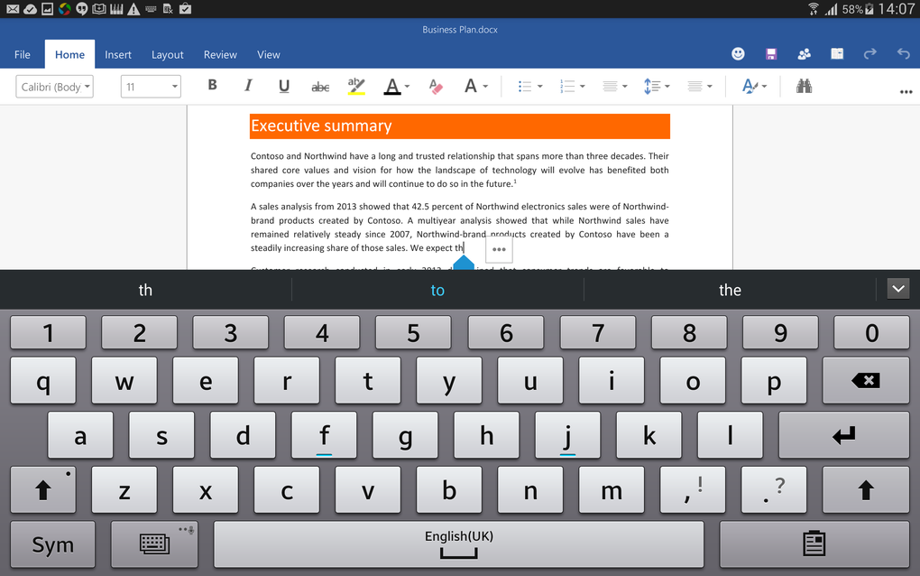 Office Android tablet sürümü kullanıcı arayüzü ve işlevler bakımından iPad için Office ile hemen hemen aynı niteliklere sahip. Microsoft sadece 7 ila 10.1 inç arası büyüklükte ekranlara sahip ve ARM tabanlı işlemciyle çalışan tabletleri destekliyor. Bu da şu anda piyasada bulunan çoğu Android tabletin kapsandığını gösteriyor.