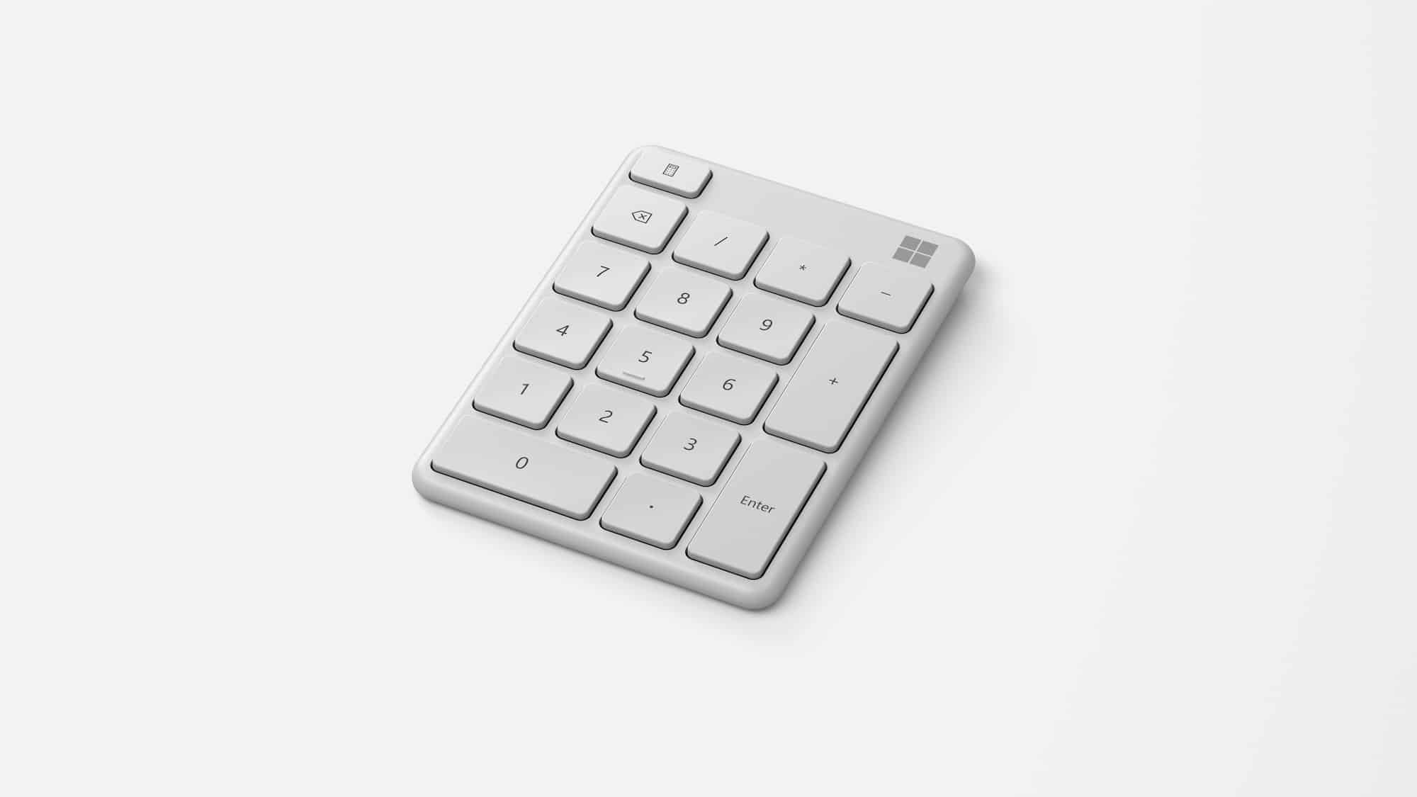 Tam teşekküllü bir klavye istemeyen veya Designer Compact Keyboard’a biraz daha özellik kazandırmak isteyenler için Microsoft, küçük ve kablosuz bir sayısal tuş takımı sunuyor. Bu tuş takımı için 24.99 dolar ödemek gerekecek.