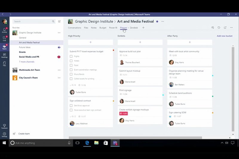 Tabii ki, Microsoft Teams’i Office ve Skype’ın derinliklerine kadar ekliyor. Word, Excel, PowerPoint ve OneNote’un hepsi Microsoft Teams’e entegre ediliyor. Aynı zamanda Skype for Business ile toplantılara da entegrasyon mevcut. Gerçek anlamda Microsoft dünyasında yaşayan işletmeler için SharePoint, PowerBI ve Planner’a da entegrasyon imkanı sunuyor. Slack gibi Teams de kişiler, dosyalar ve sohbetler içinde arama yapma imkanı sağlıyor. Ayrıca Microsoft Exchange entegrasyonunu kullanarak bildirim desteği de sunuyor.