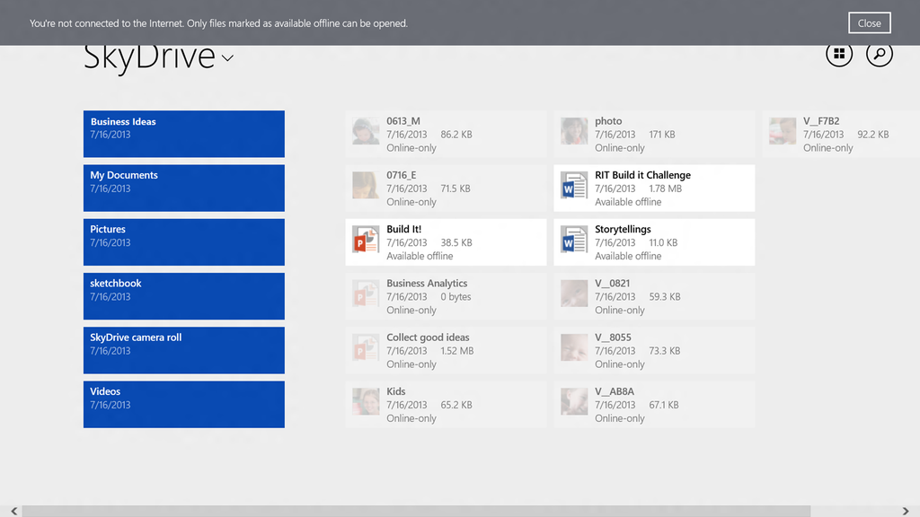Windows 8.1’i kapsayan güncellemeyle birlikte kullanıcılar dosyalara internet bağlantısı olmadan da erişme konusunda önemli bir adım attı. Tek bir dosya veya klasörü seçen kullanıcı “Çevrim dışı yap” butonuna tıklayarak o nesneyi internete bağlı olunmadığı durumda da erişilebilir kılabiliyor. Resmi Windows blogunda konuyla ilgili olarak yayınlanan yazıya göre bir dosya üzerinde yapılan tüm düzenleme çalışmaları da eşzamanlanacak.