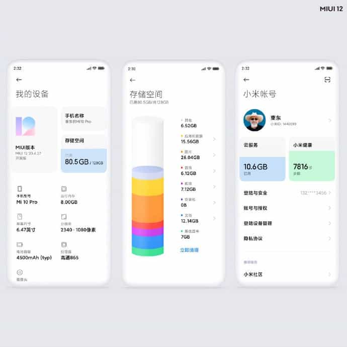 MIUI 12’de Xiaomi, temel sistem bilgisini de görsel hâle getirdi. Böylelikle sistem ile ilgili bilgileri tek bir bakışta anlaşılır biçimde görebilirsiniz. Xiaomi bu görünümü “Sensory Visual Design” olarak adlandırıyor. Bu, telefondaki Ayarlar bölümü altında bulunan sistem bilgileri sayfasına girdiğinizde, mevcut depolama alanı gibi bilgileri ilk bakışta anlaşılır biçimde görmenizi sağlayacak. Ayrıca diğer sistem bilgileri de grafikler ve görsel diyagramlarla gösterilecek. Bu sayede bilgileri anlamak daha kolay hâle gelecek.