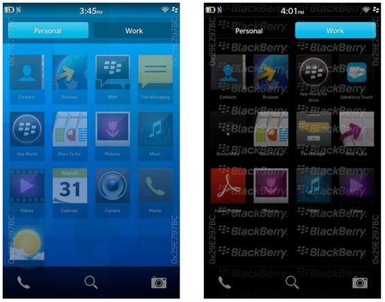 Kanadalı şirket BlackBerry Balance adı verilen sistem hakkında da bazı bilgiler verdi. Bu sistem kullanıcılara tek bir akıllı telefonda efektif olarak iki ayrı cihaz kullanma şansı sunacak. Bu iki ayrı sanal telefonun uygulamaları ve verileri birbirinden bağımsız olacak, iki tarafın da birbirine müdahalesi olmayacak. Örneğin kişisel hesaptan iş hesabına herhangi bir bilgi kopyalamak mümkün olmayacak. Bununla birlikte takvim veya e-posta gibi, bilgi paylaşımında bulunacak uygulamalar da mevcut olacak. Ne var ki, eğer kullanıcı kişisel mod içindeyse, o hâlde takvimde sadece zaman bilgilerini görebilecek, e-posta iletilerini ise şifre girdikten sonra okuyabilecek.