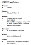 HTC’nin iki yeni Windows Phone cihazı IFA 2011’de sergileniyor. Bu cihazlardan ilki olan HTC Titan 1.5 GHz’lik tek çekirdekli işlemci, f/2.2 açıklıklı 8 megapiksel, 28 mm lensli, çift LED flaşlı, 720p HD video kayıt yetenekli arka kamera ve arkadan aydınlatmalı sensör gibi özellikleri bünyesinde barındırıyor.