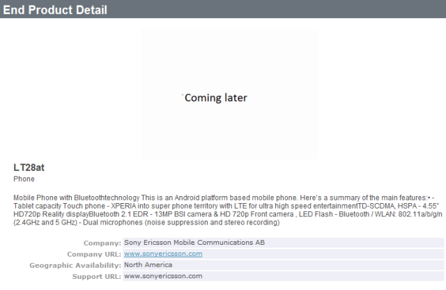 Sony Ericsson’un bir süredir fotoğrafları internete sızan devasa ekranlı telefonu LT26i, nam-ı diğer Nozomi‘nin kardeşi olarak nitelendirilen LT28at’nin detayları Bluetooth Special Interest Group (SIG) veritabanı sayesinde internete sızdı. Görünüşe göre bu cihaz ABD ve Çin’de çalışacak şekilde tasarlanmış. Xperia süper telefonu olarak nitelendirilen bu cihaz LTE ve HSPA mobil bağlantı desteğinin yanı sıra Çin’deki şebekelerde çalışacak şekilde TD-SCDMA desteği de barındırıyor.