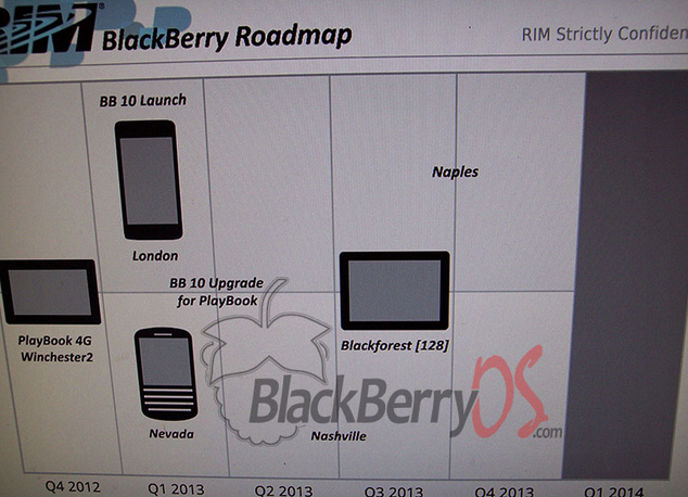 Bu arada yol haritasında Blackforest kod adlı bir tablet de yer alıyor. Bu tabletin 2013’ün üçüncü çeyreğinde duyurulacağı işaret edilmiş. Bu da 10 inç’lik BlackBerry tablet dedikodularıyla örtüşen bir durum. Bu arada 2013 yılında çıkacak cihazlar arasında Nashville ve Naples gibi tanıdık kod adlarını da görüyoruz. Eğer yol haritasının gerçeklik payı varsa, uzun zaman önce sözü verilen 7 inç’lik, 4G destekli BlackBerry PlayBook da yıl bitmeden çıkacak. Ayrıca BlackBerry PlayBook için söz verilen BlackBerry 10 güncellemesinin de 2013’ün ilk yarısında geleceği ifade ediliyor.