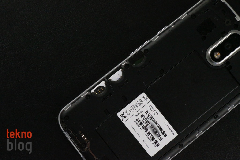 Arka kapağı yerinden çıkarmak ise oldukça kolay. Telefonun alt kenarı ve arka kapak arasındaki küçük boşluğa hafif bir müdahale yapıldığında arka kapak açılıyor. Burada SIM kart ve microSD kart yuvaları bulunuyor. Ülkemizde satılan Moto G4 Plus’lara çift SIM kart takılabildiğini belirtmekte fayda var. Moto G4 Plus microSIM kart ile çalışsa da, telefon her iki SIM kart yuvasında da bir nanoSIM adaptörü barındırıyor. Bu sayede nanoSIM kart sahiplerinin Moto G4 Plus kullanmak için adaptör aramasına gerek kalmıyor. Akıllı telefonun arka kapağı açılabilse de, 3000 mAh kapasiteli pilin yerinden çıkarılamadığını belirtmekte fayda var.