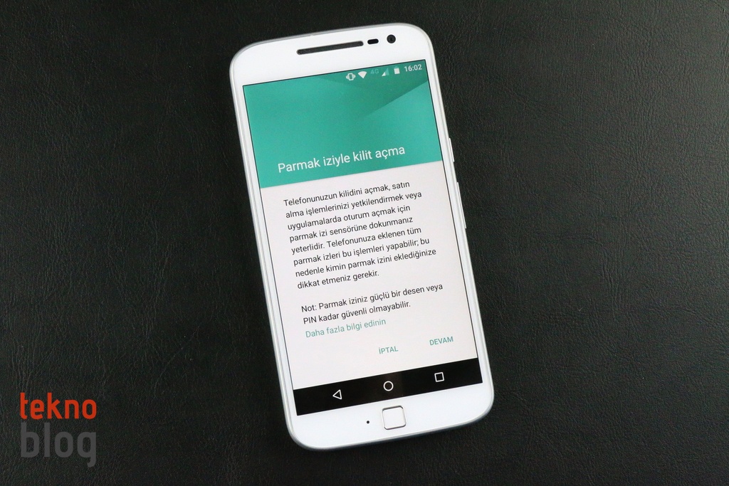 Parmak izi tarayıcısına dair tek kötü şey ise aynı zamanda bir ana ekran tuşuymuş gibi görünmesi olabilir. Moto G4 Plus deneyimimiz sırasında elimiz sık sık ana ekrana döneceğimiz düşüncesiyle parmak izi tarayıcısına gitti. Bu ciddi bir sorun olmasa da, azıcık sinir bozan küçük bir detay olarak tanımlanabilir.