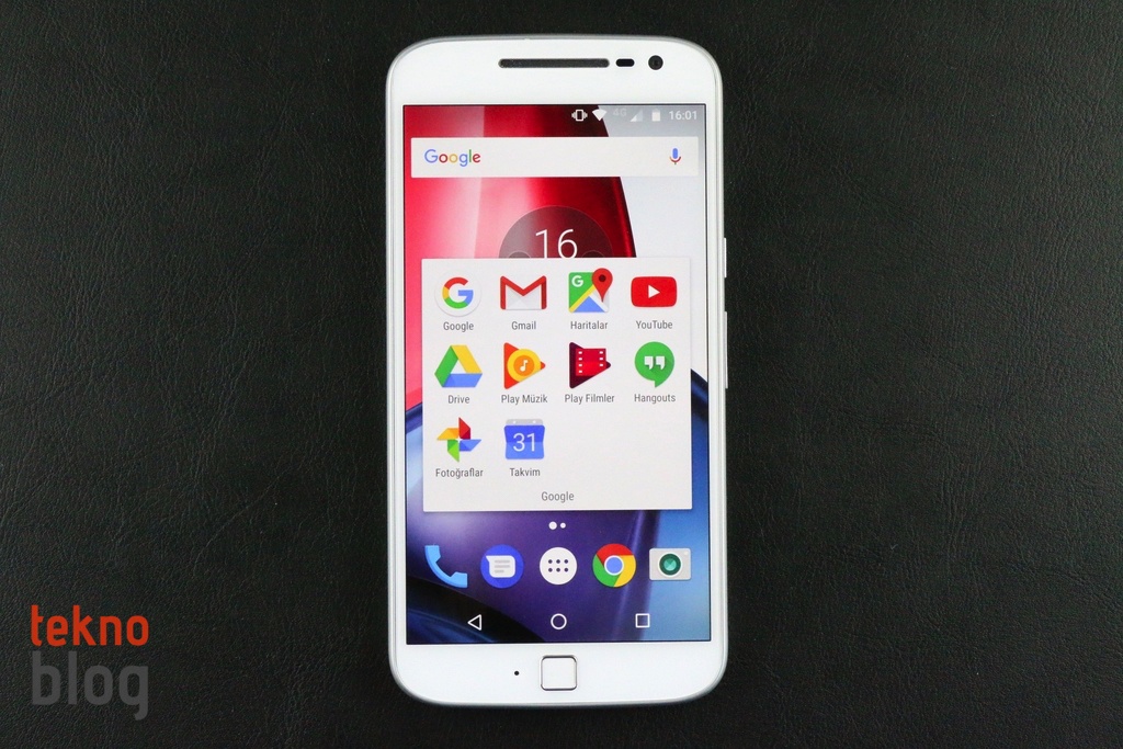 Moto G4 Plus’ın ana ekranında bulunan Google klasöründe Gmail, Haritalar, Takvim, YouTube, Fotoğraflar gibi Google imzalı uygulamaları bulmak mümkün oluyor. Chrome uygulamasına ise ana ekranın alt kısmındaki dock’ta sabit olarak bulunan ikonu üzerinden erişiliyor.