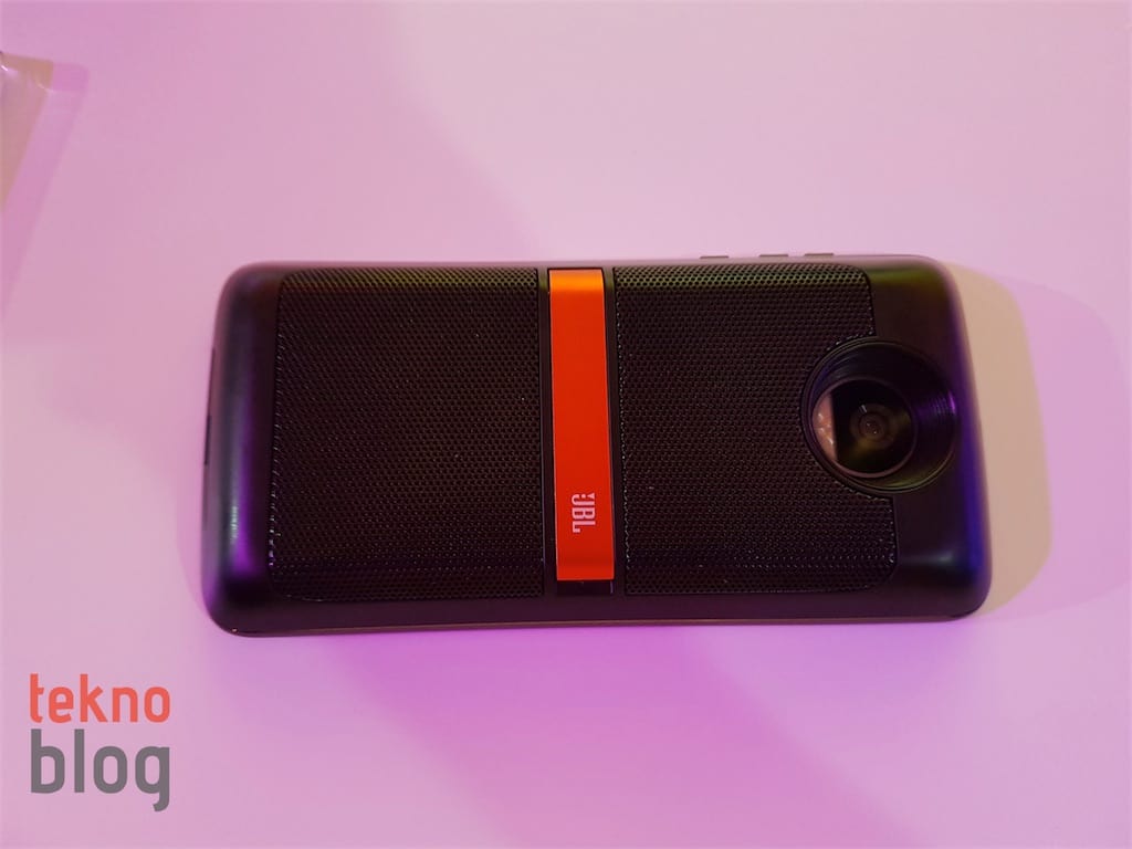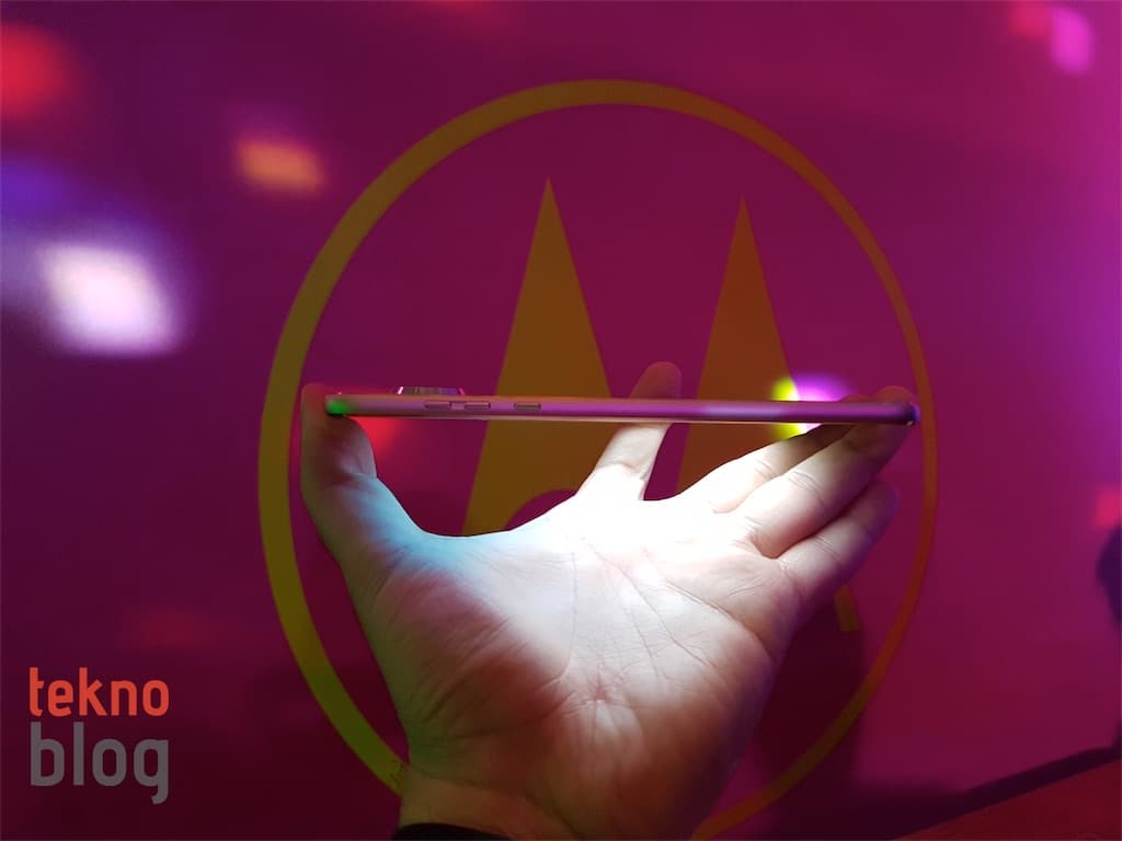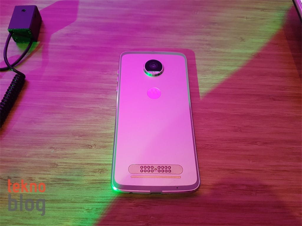 Ancak bu ağırlık değişikliği dışında telefonun dış görünümünde bir değişiklik göze çarpmıyor. Arka panelin alt kısmında yine Moto Mod’ların cihaza takılmasını sağlayan bir alan bulunuyor. Arka panelde yukarıya çıkıldığında orta bölümde Motorola logosu ve onun biraz üzerinde de kamera kurulumu bulunuyor. Kamera kurulumunun cihazın kasasının geneline kıyasla bir hayli çıkıntılı olması gözden kaçmıyor.