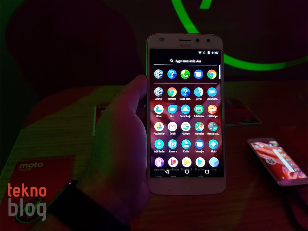 Yazılım kısmına baktığımızda ise Motorola’nın Moto serisindeki diğer telefonlarda yerleştiği çizgiden sapmadığı görülüyor. Kutusundan Android 7.1.1 Nougat işletim sistemiyle çıkan telefon, saf Android’e oldukça yakın bir deneyim sunuyor. Google uygulamalarının varsayılan çözüm olarak sunulduğu telefonun uygulama menüsünde yine alfabetik düzen görülüyor. En sık kullanılan uygulamalar ekranın üst kısmına yerleştiriliyor. Arama çubuğu ise aranan uygulamaya hızlı biçimde ulaşmayı sağlıyor. Moto Z2 Play’de menü sayfaları arasında geçişler oldukça hızlı. Uygulamalar başlatılırken de bir takılma gözlenmiyor. Buna ek olarak; parmak izi tarayıcısı, tıpkı Moto G5’te olduğu gibi, telefonda gezinme konusunda izleme dörtgenine benzer biçimde kullanılabiliyor.
